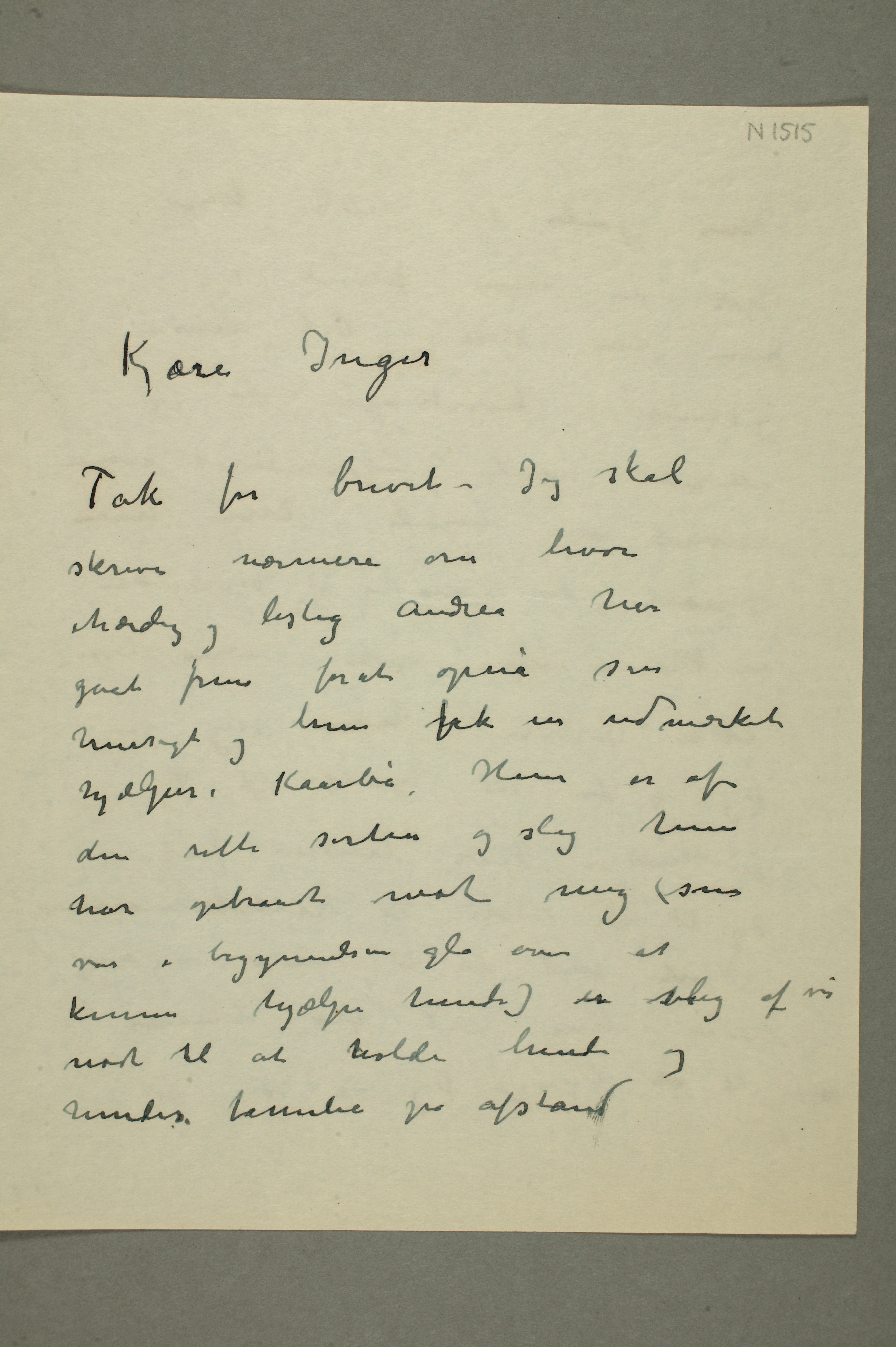 MM N 1515, Munchmuseet. Ikke datert. Brev til Inger Munch