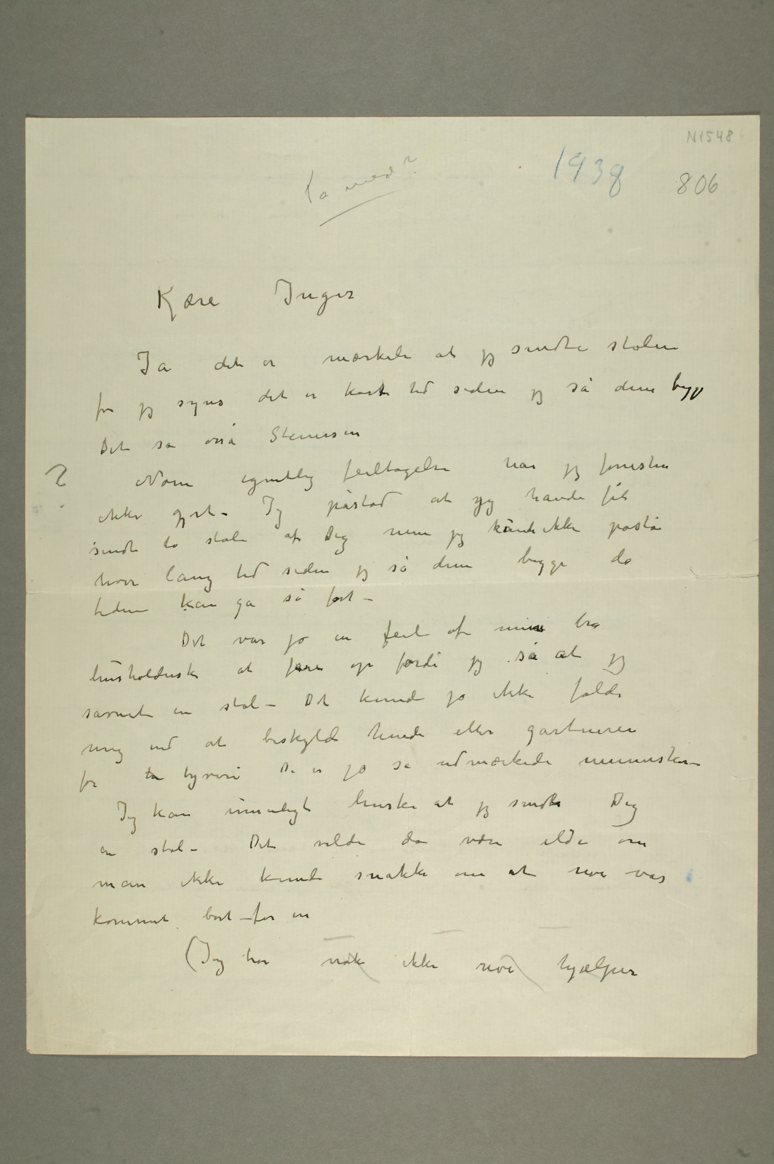 MM N 1548, Munchmuseet. Datert 1938. Brev til Inger Munch