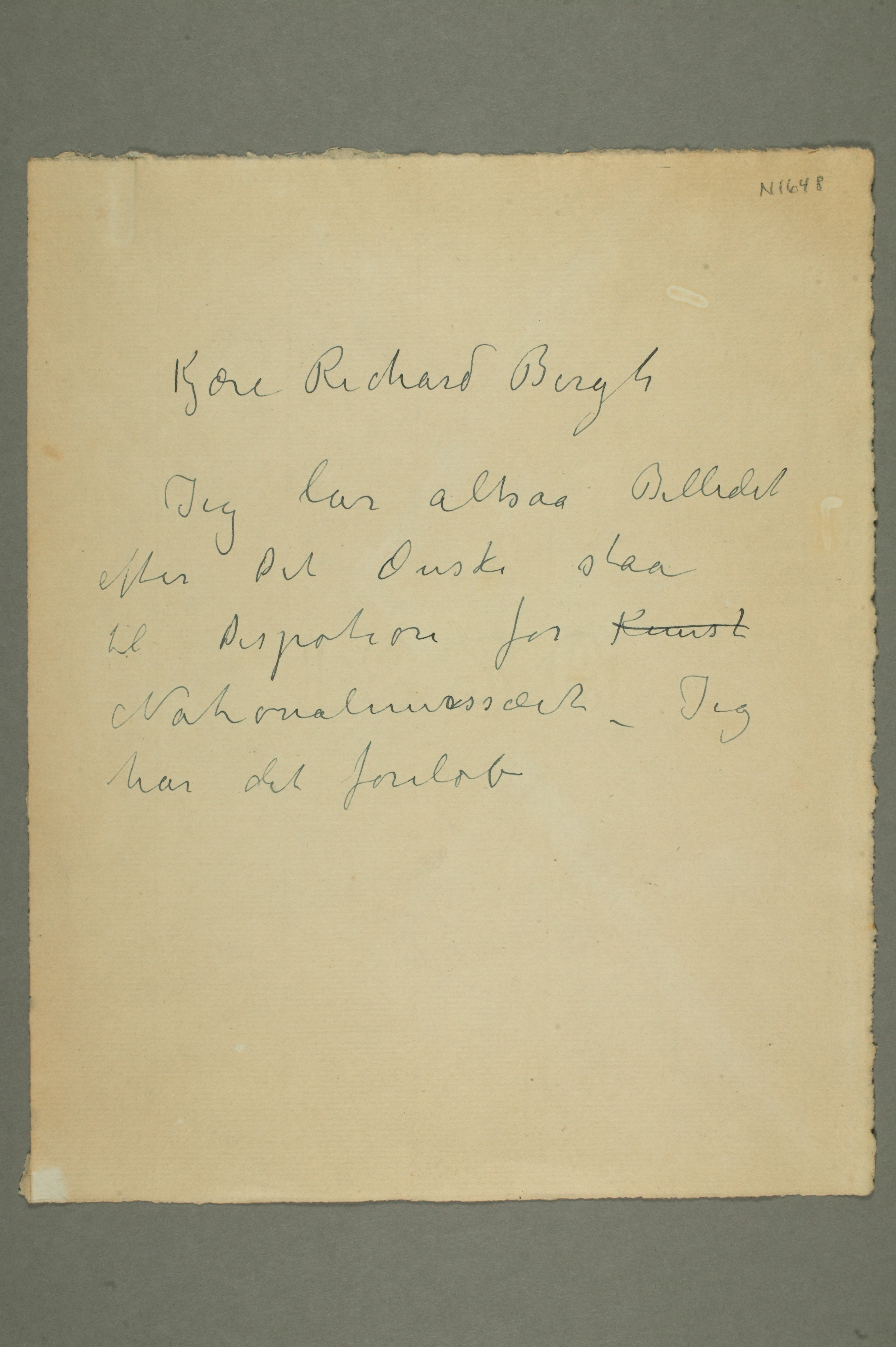 MM N 1648, Munchmuseet. Ikke datert. Brevutkast til Richard Bergh.