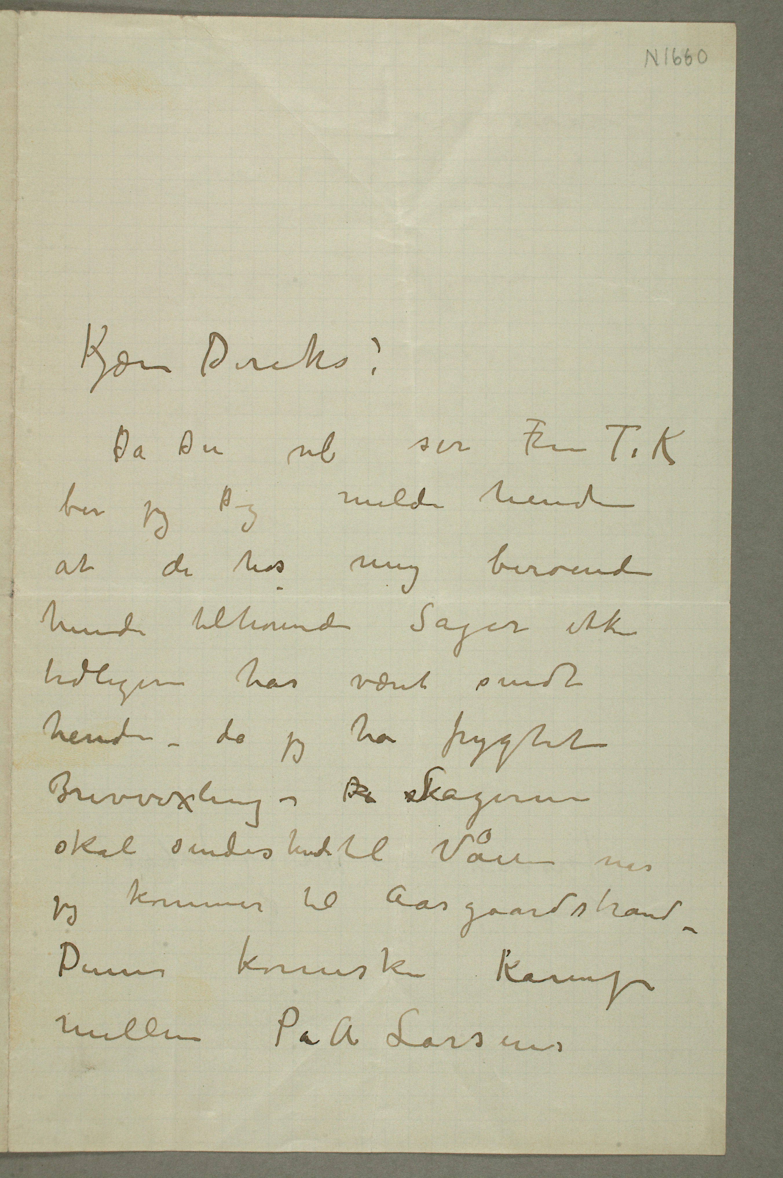 MM N 1660, Munchmuseet. Ikke datert. Brevutkast til Edvard Diriks.