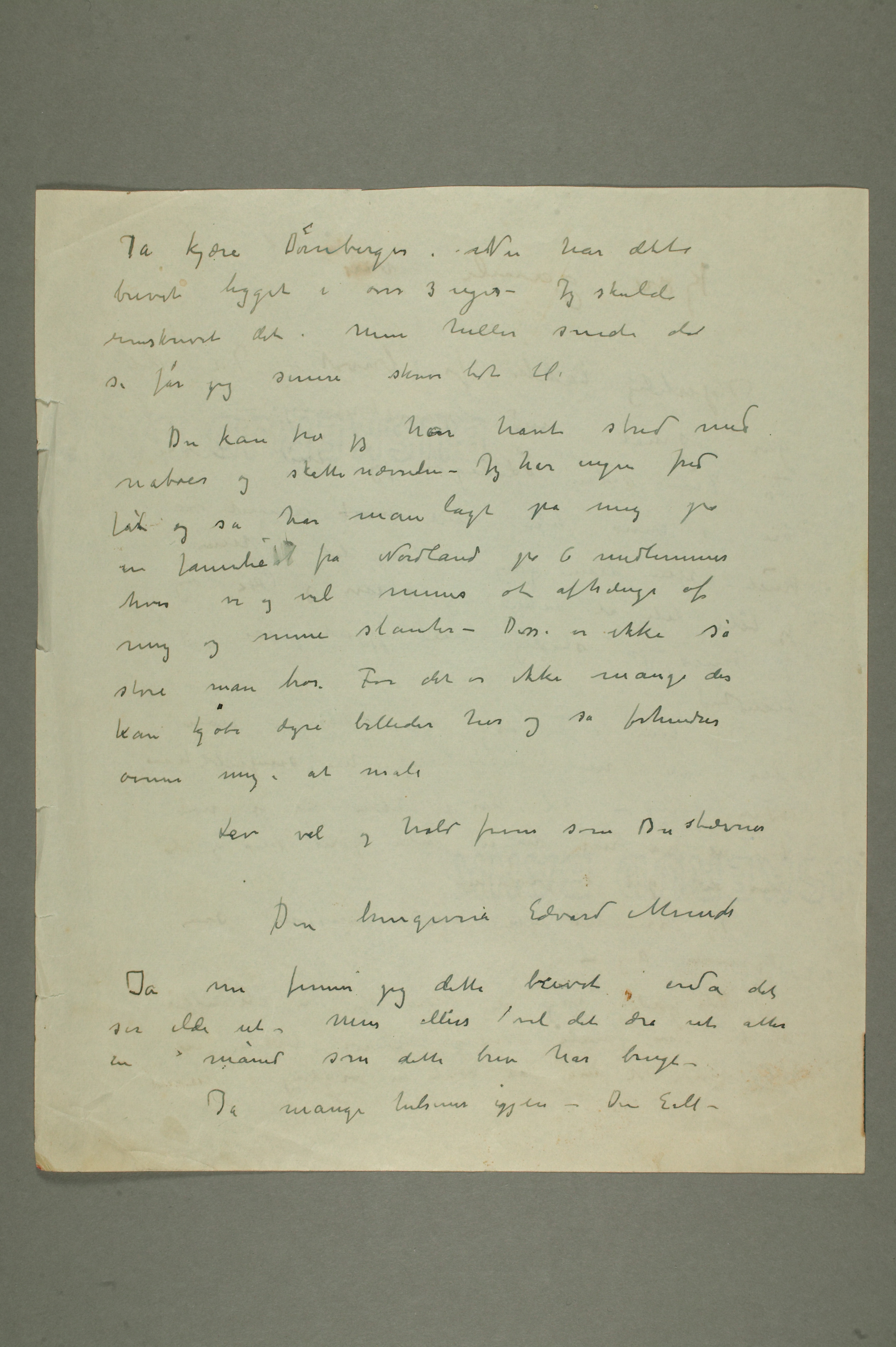 MM N 1670, Munchmuseet. Datert 1937. Brevutkast til Carl Dørnberger.