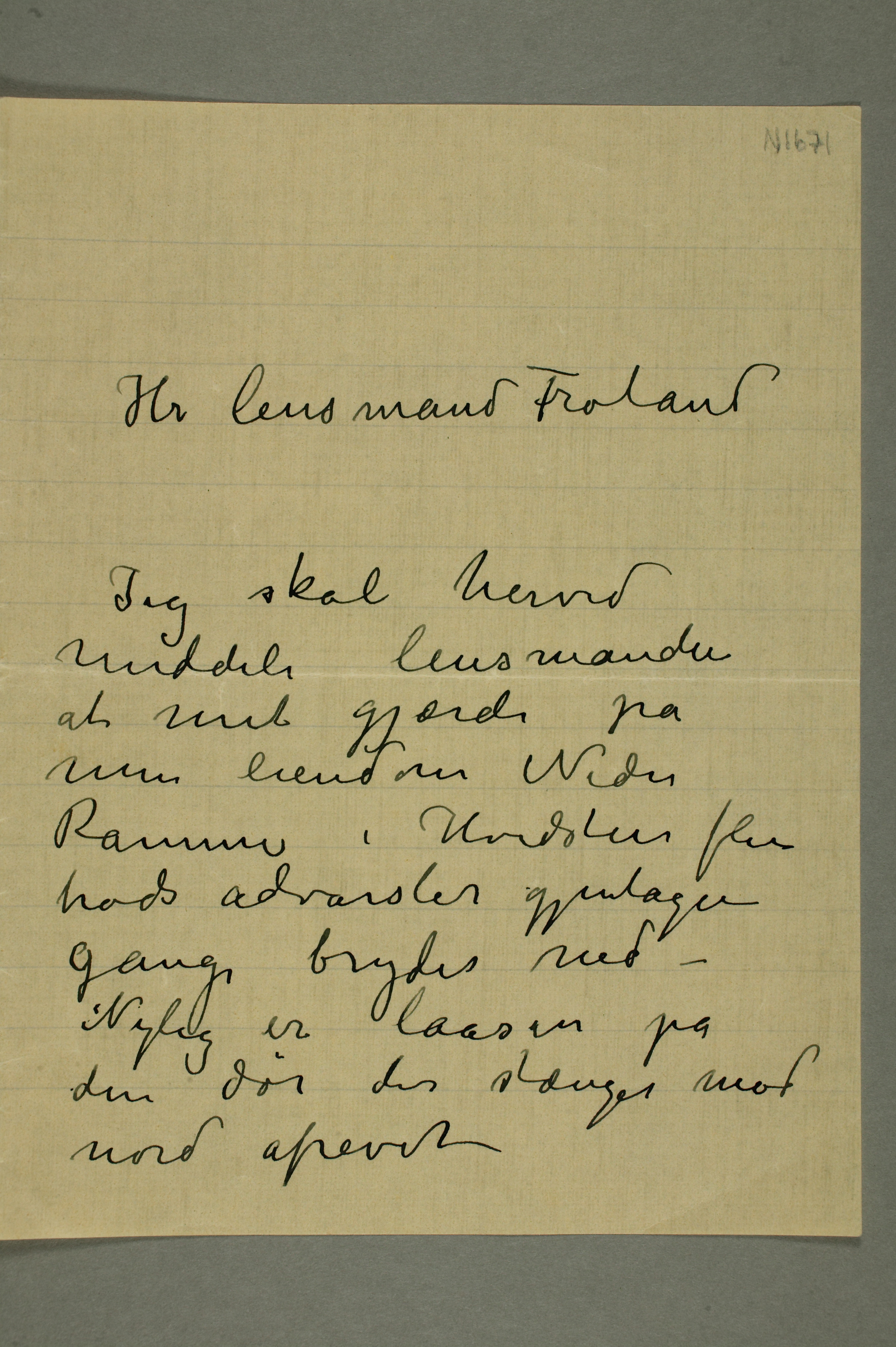 MM N 1671, Munchmuseet. Ikke datert. Brevutkast til Frøland.