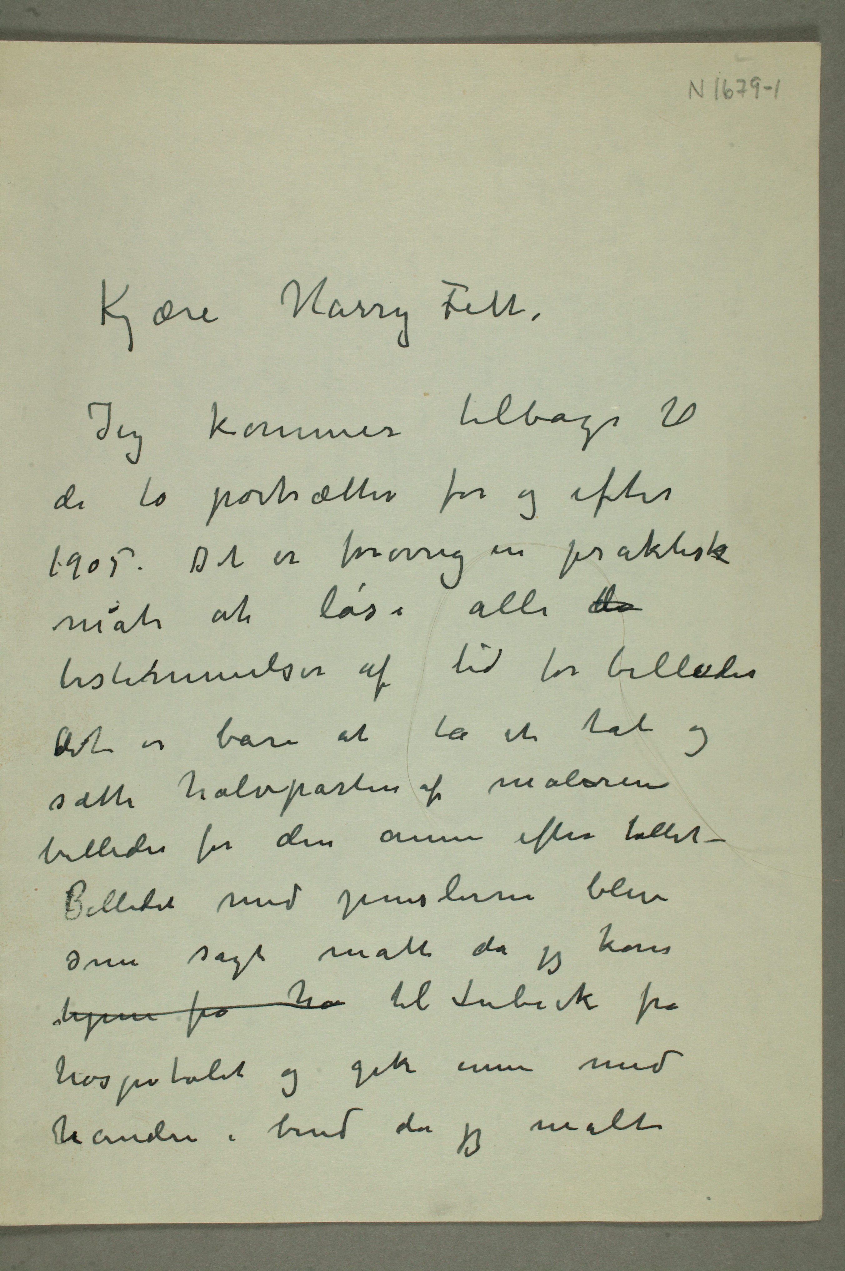 MM N 1679, Munchmuseet. Datert 1930–1940. Brevutkast til Harry Fett.