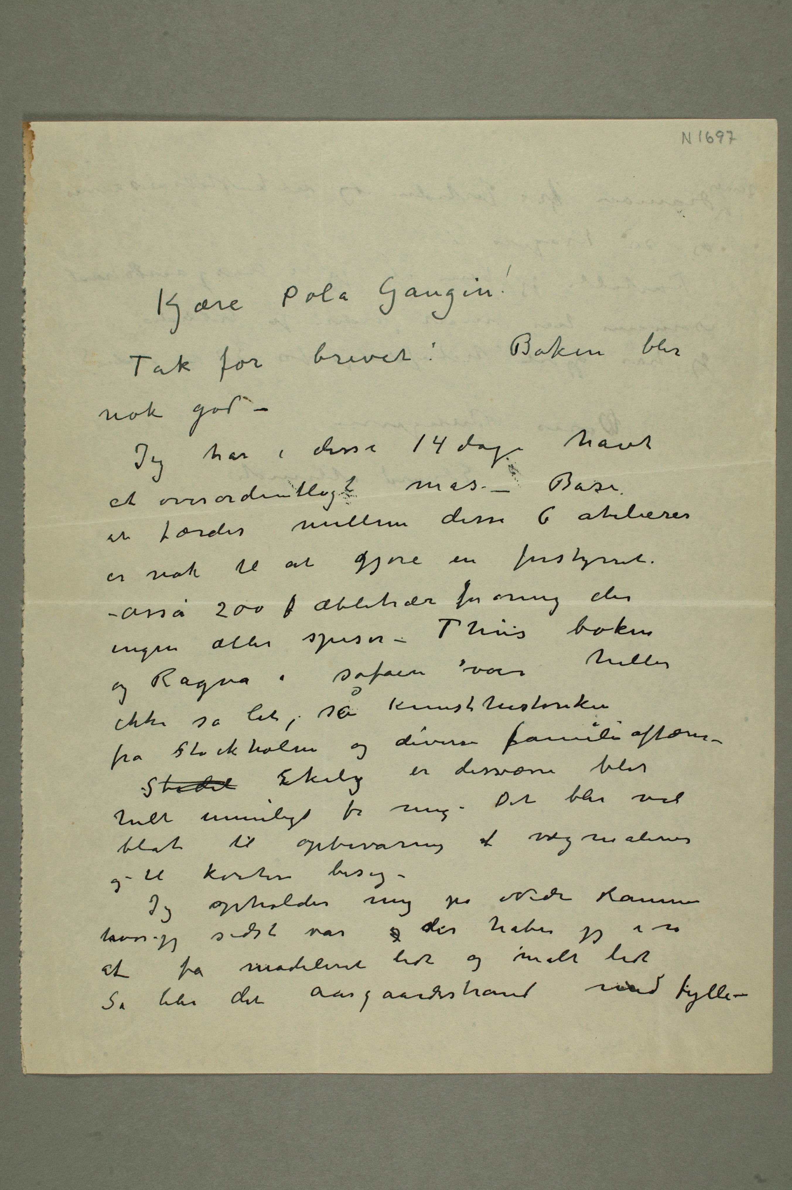 MM N 1697, Munchmuseet. Datert 1932–1933. Brevutkast til Pola Gauguin.