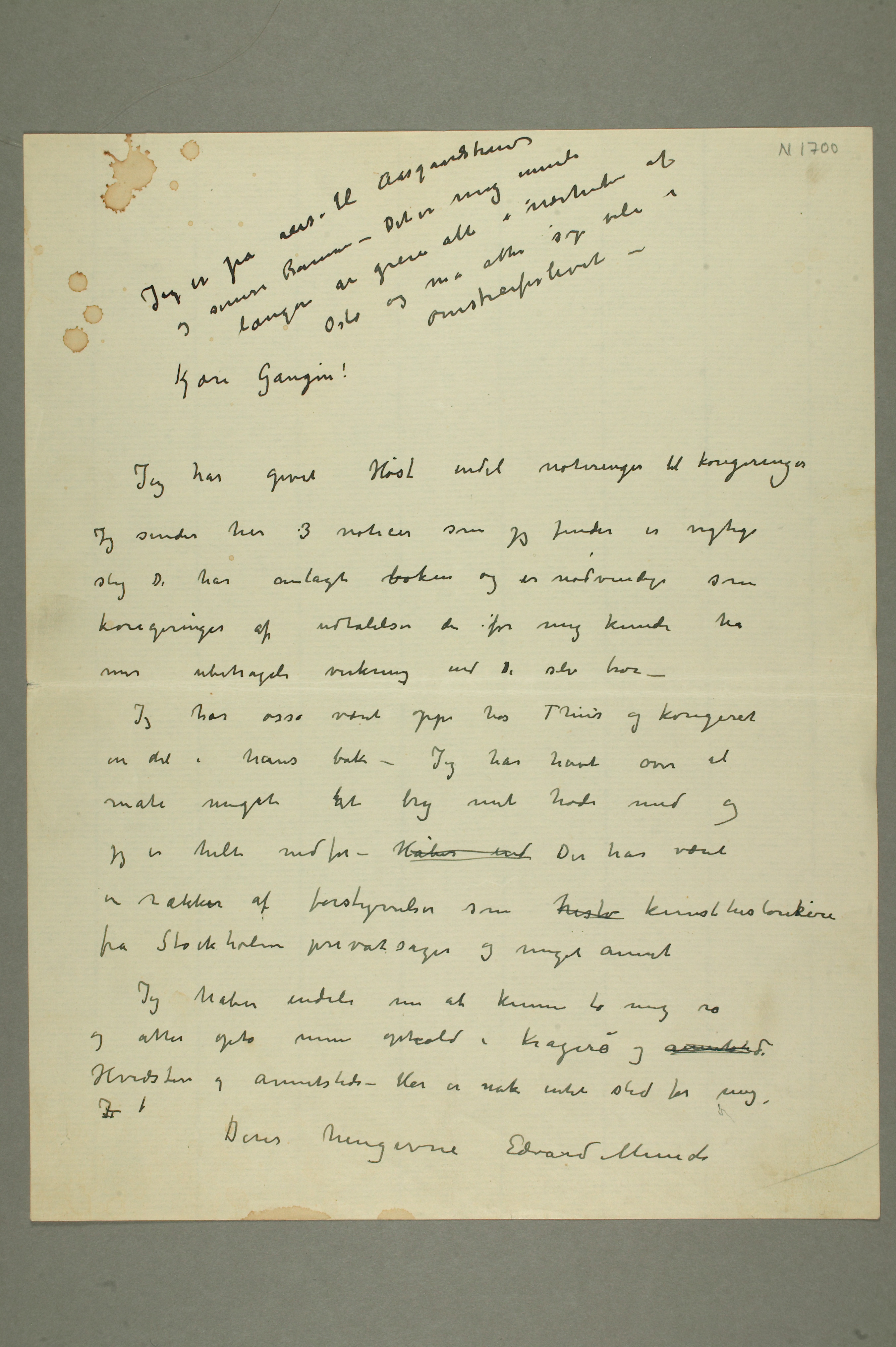 MM N 1700, Munchmuseet. Datert 1932–1933. Brevutkast til Pola Gauguin.