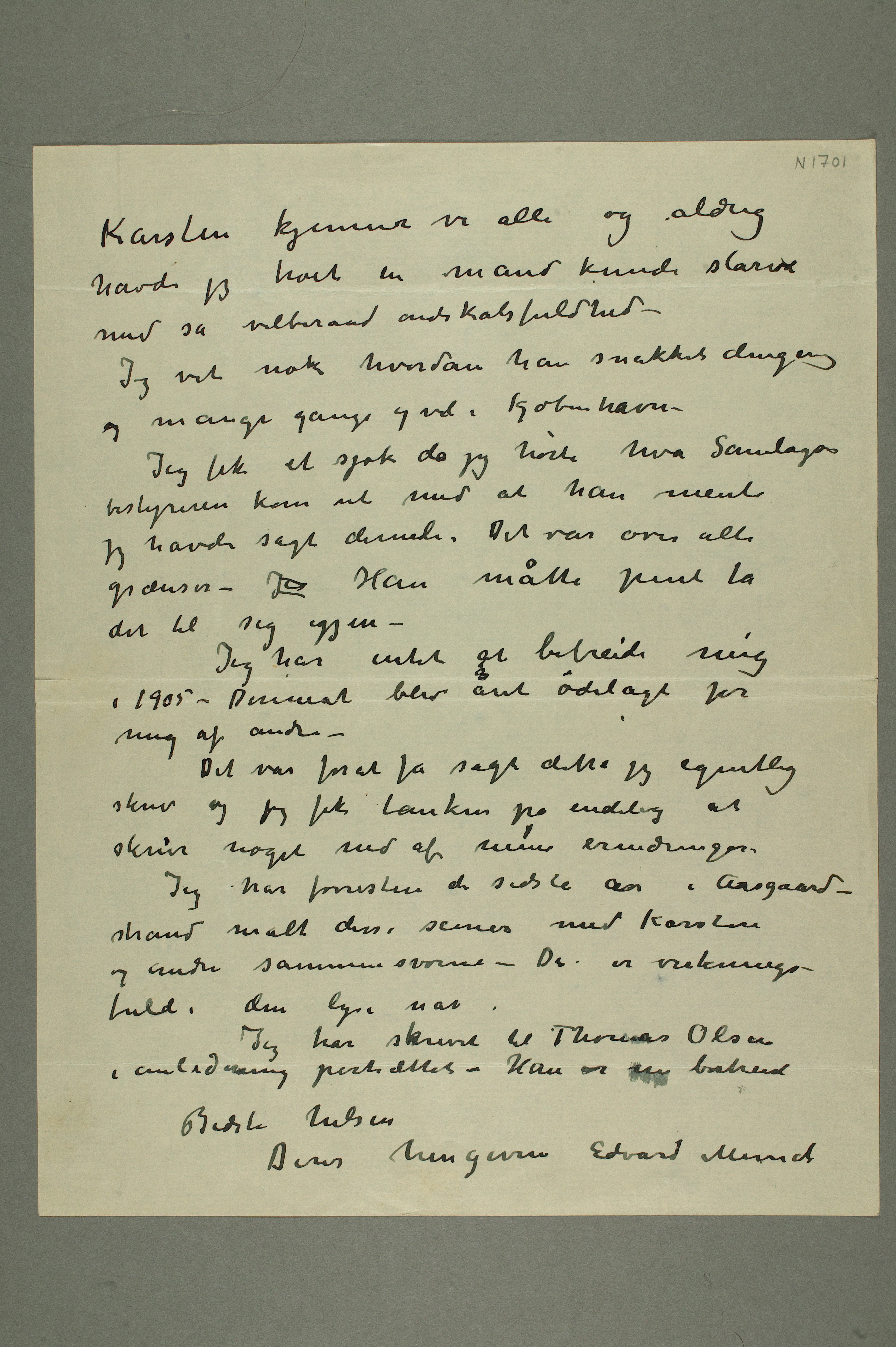 MM N 1701, Munchmuseet. Ikke datert. Brevutkast til Pola Gauguin.