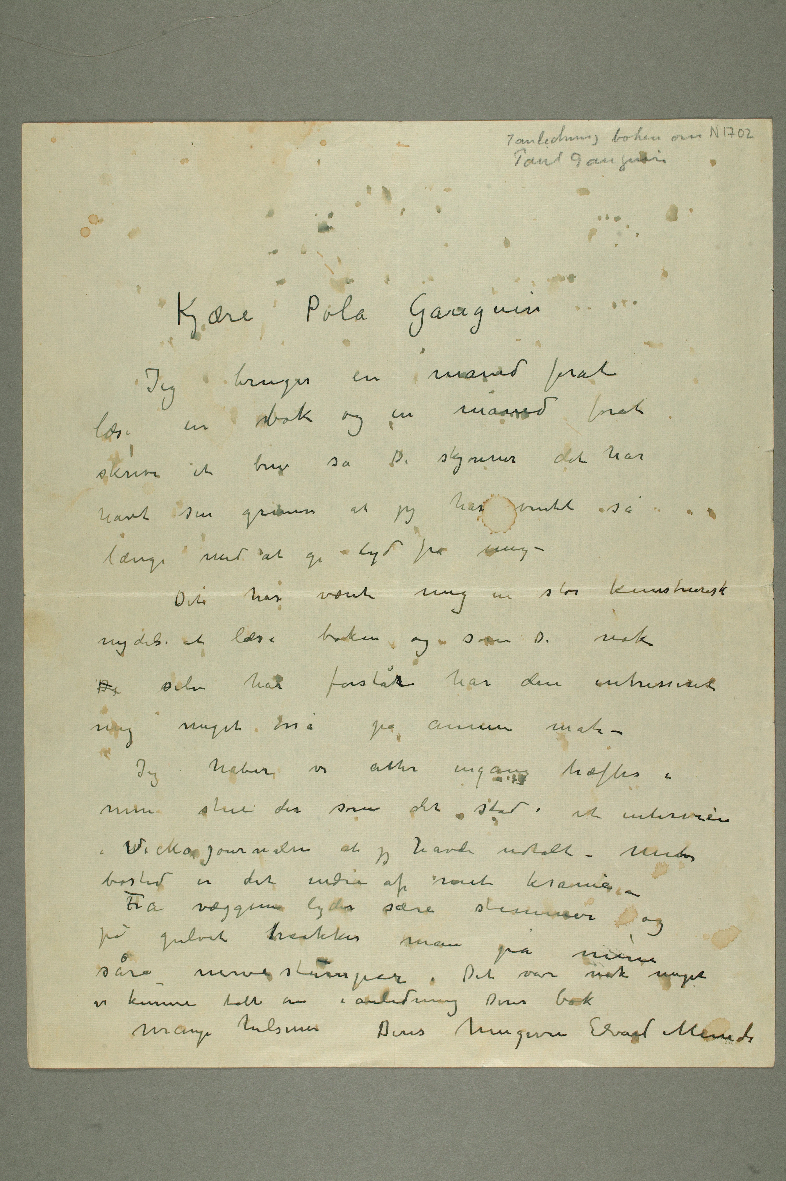MM N 1702, Munchmuseet. Ikke datert. Brevutkast til Pola Gauguin.