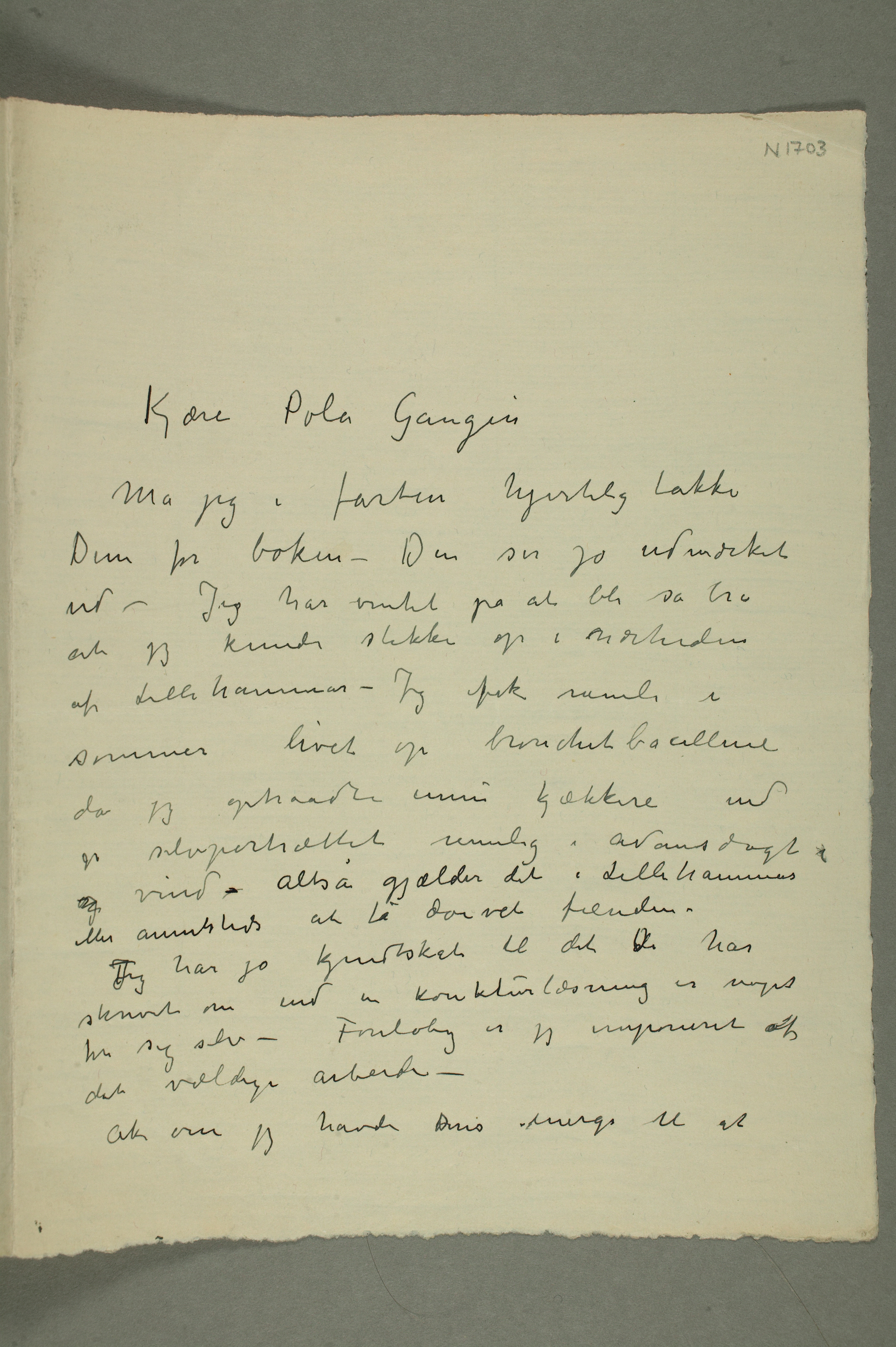 MM N 1703, Munchmuseet. Datert 1932–1933. Brevutkast til Pola Gauguin.