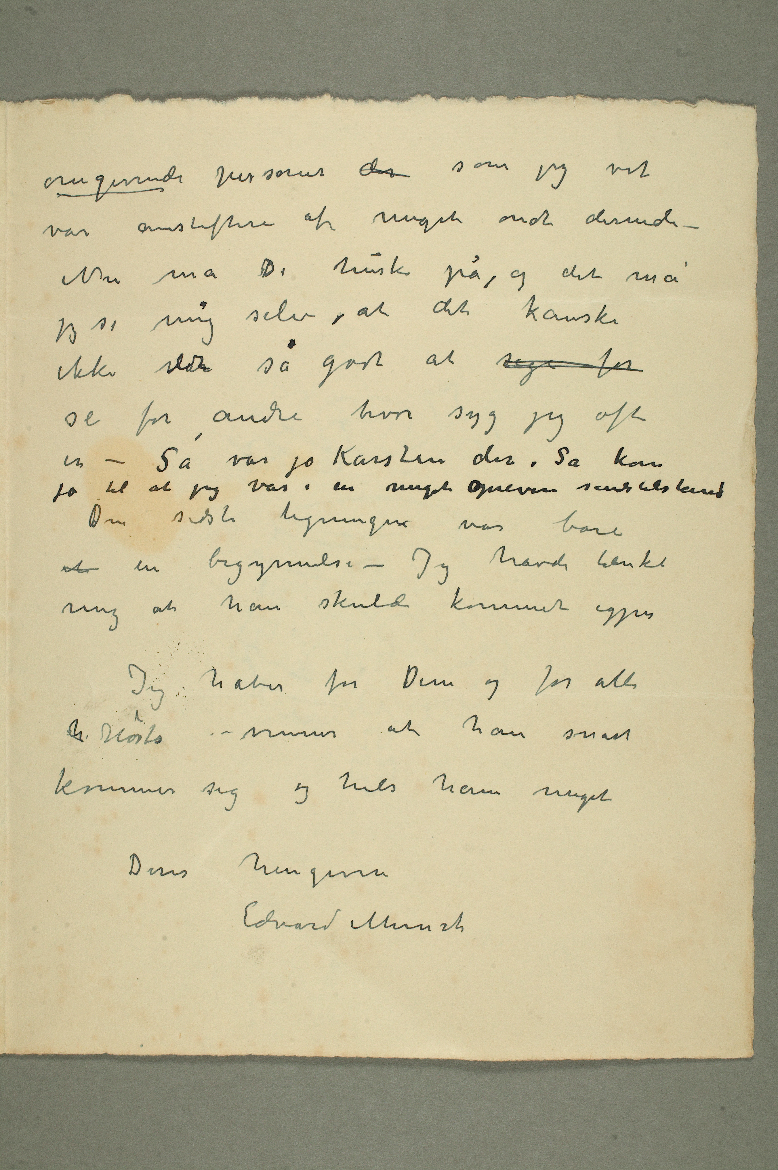MM N 1735, Munchmuseet. Ikke datert. Brevutkast til Lolly Høst.