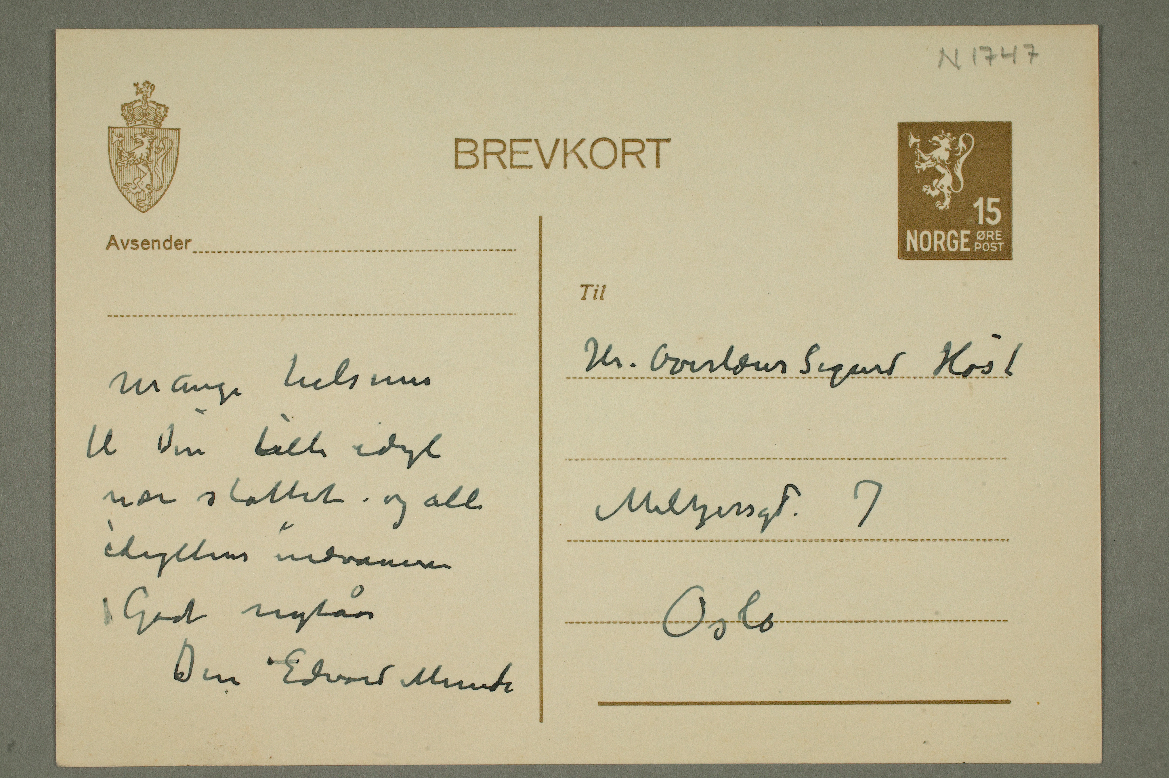 MM N 1747, Munchmuseet. Ikke datert. Brevutkast til Sigurd Høst.