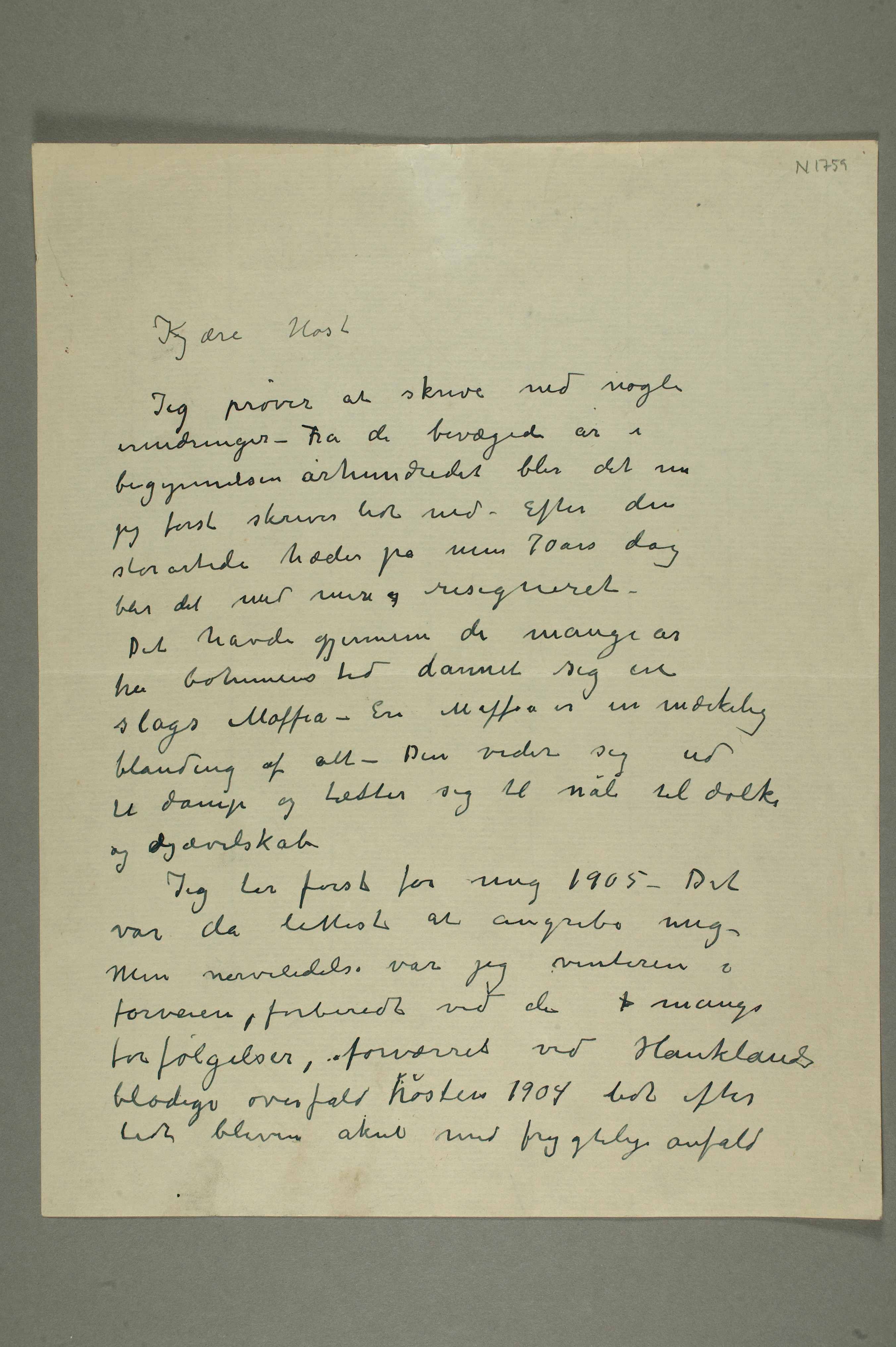 MM N 1759, Munchmuseet. Datert 1934. Brevutkast til Sigurd Høst.