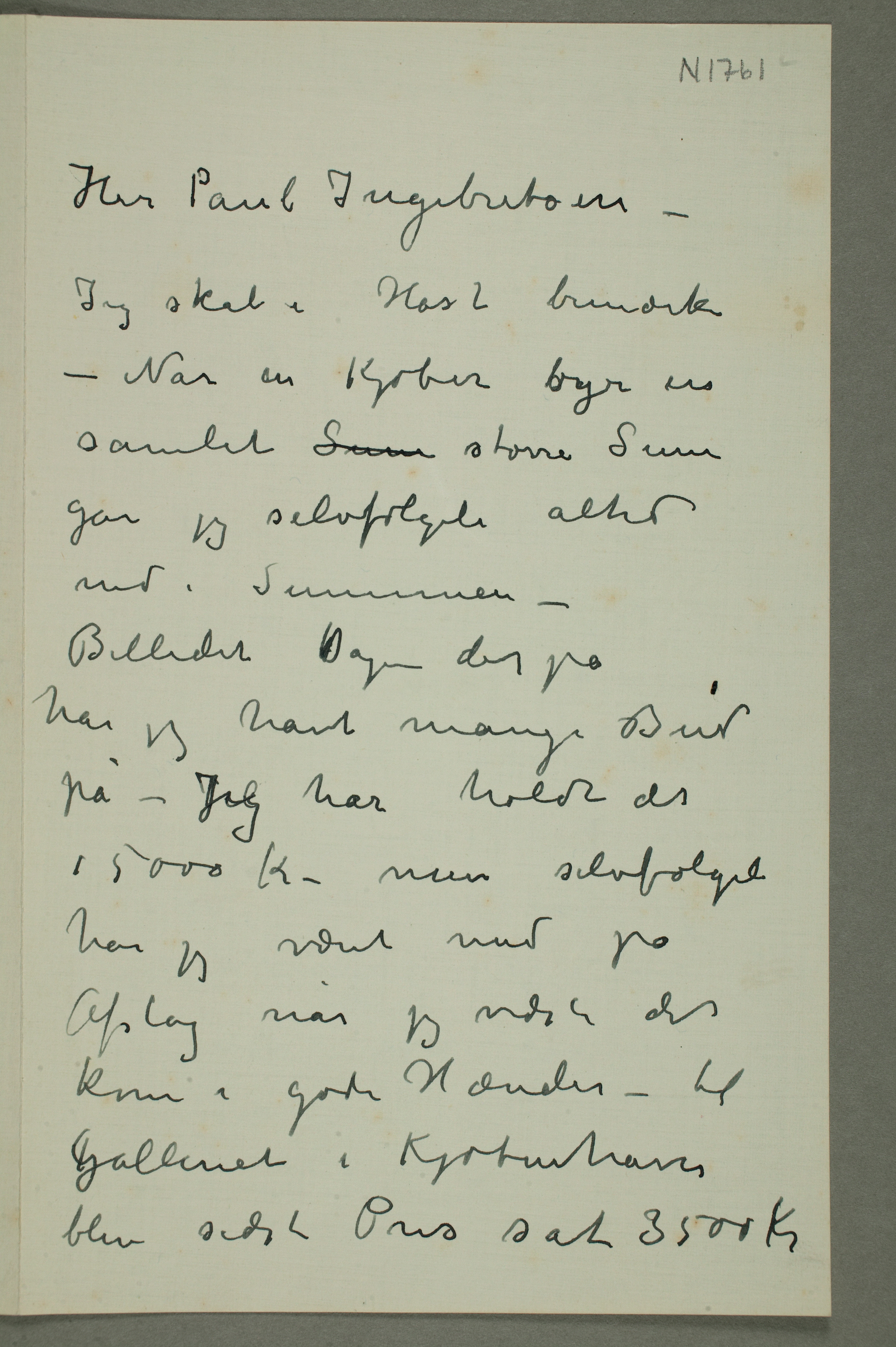 MM N 1761, Munchmuseet. Datert 1909. Brevutkast til Paul Ingebretsen.