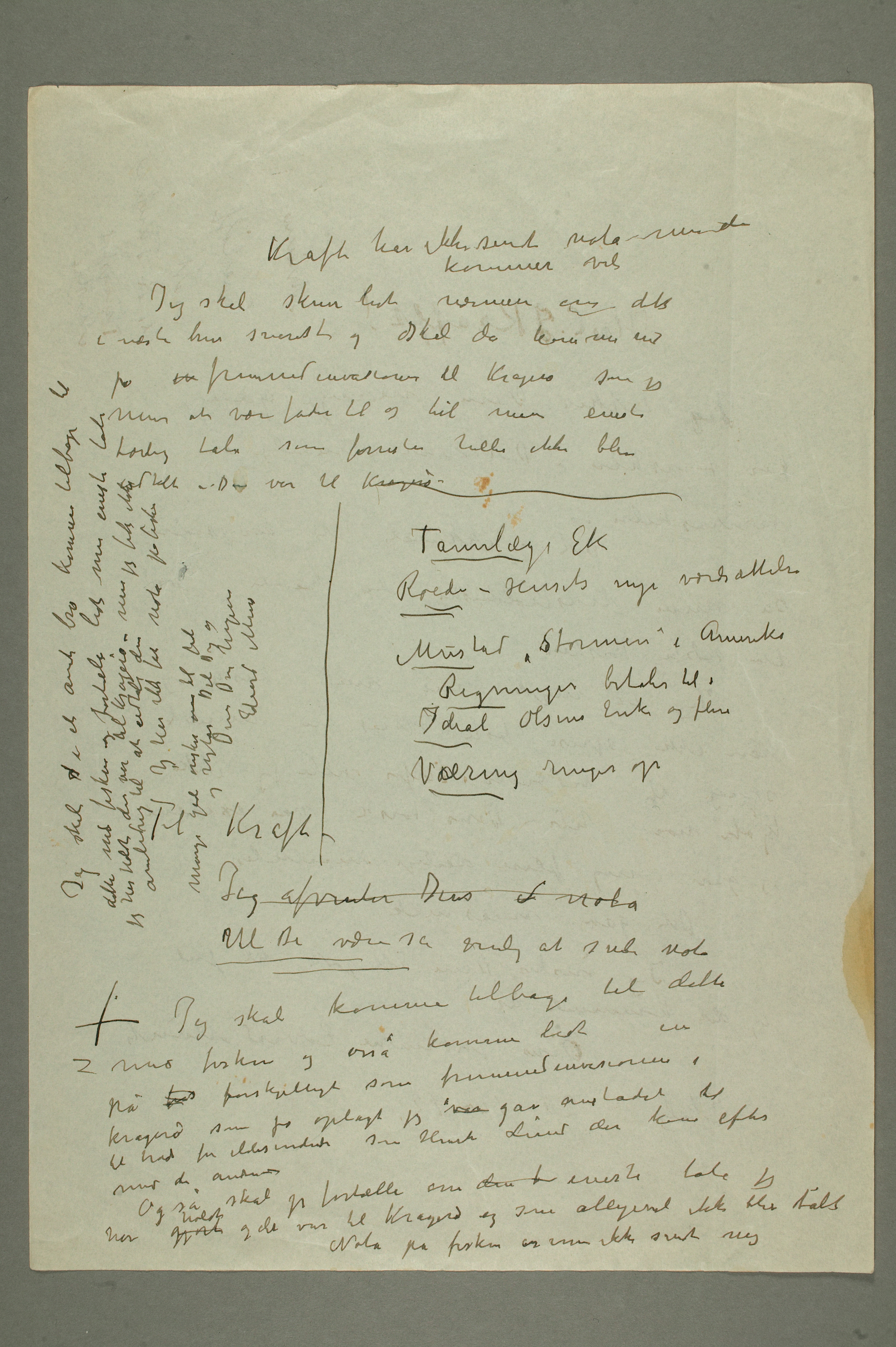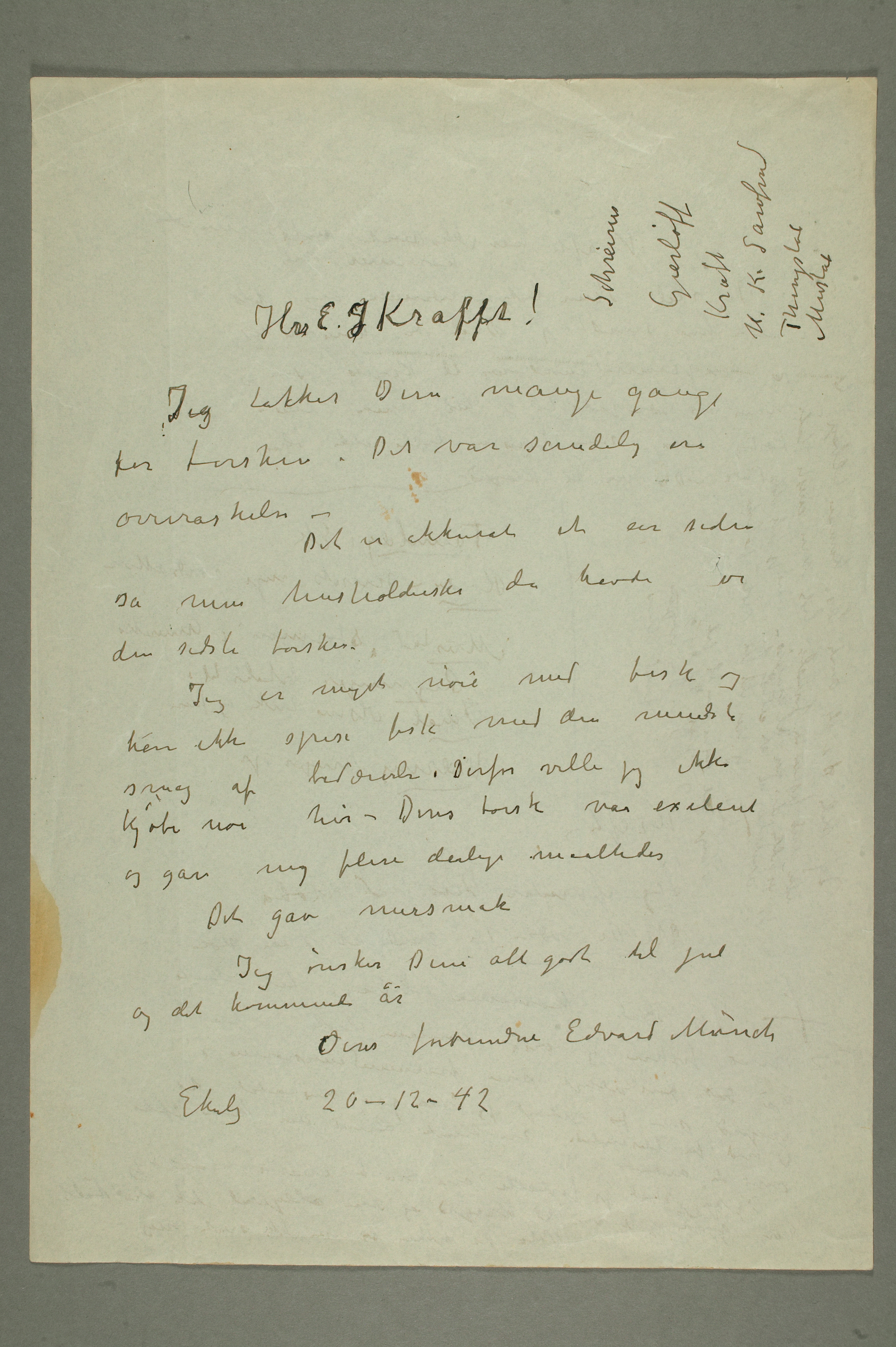 MM N 1764, Munchmuseet. Datert 20.12.1942. Brevutkast til Erik Krafft.
