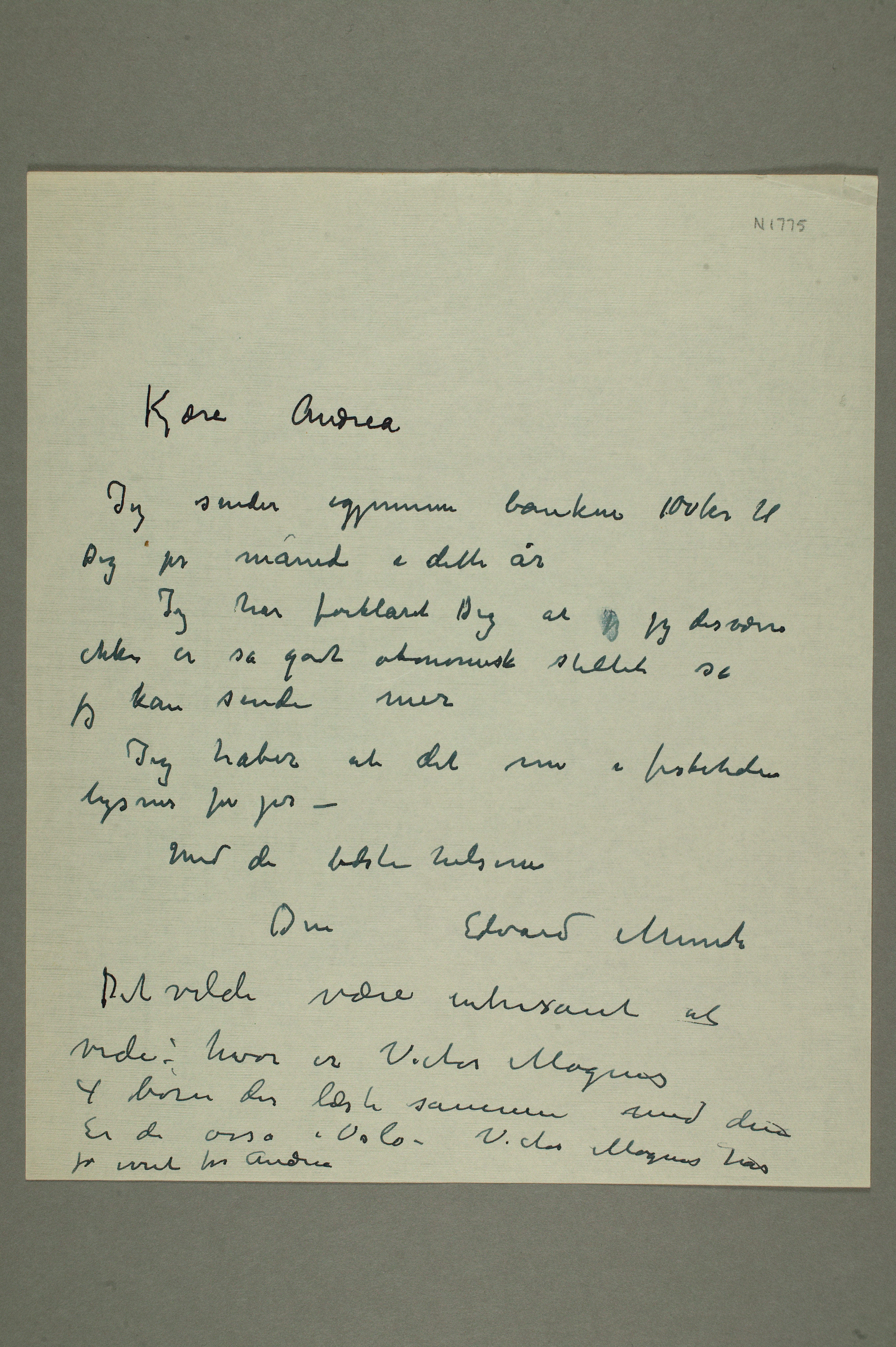MM N 1775, Munchmuseet. Ikke datert. Brevutkast til Andrea Munch-Ellingsen.