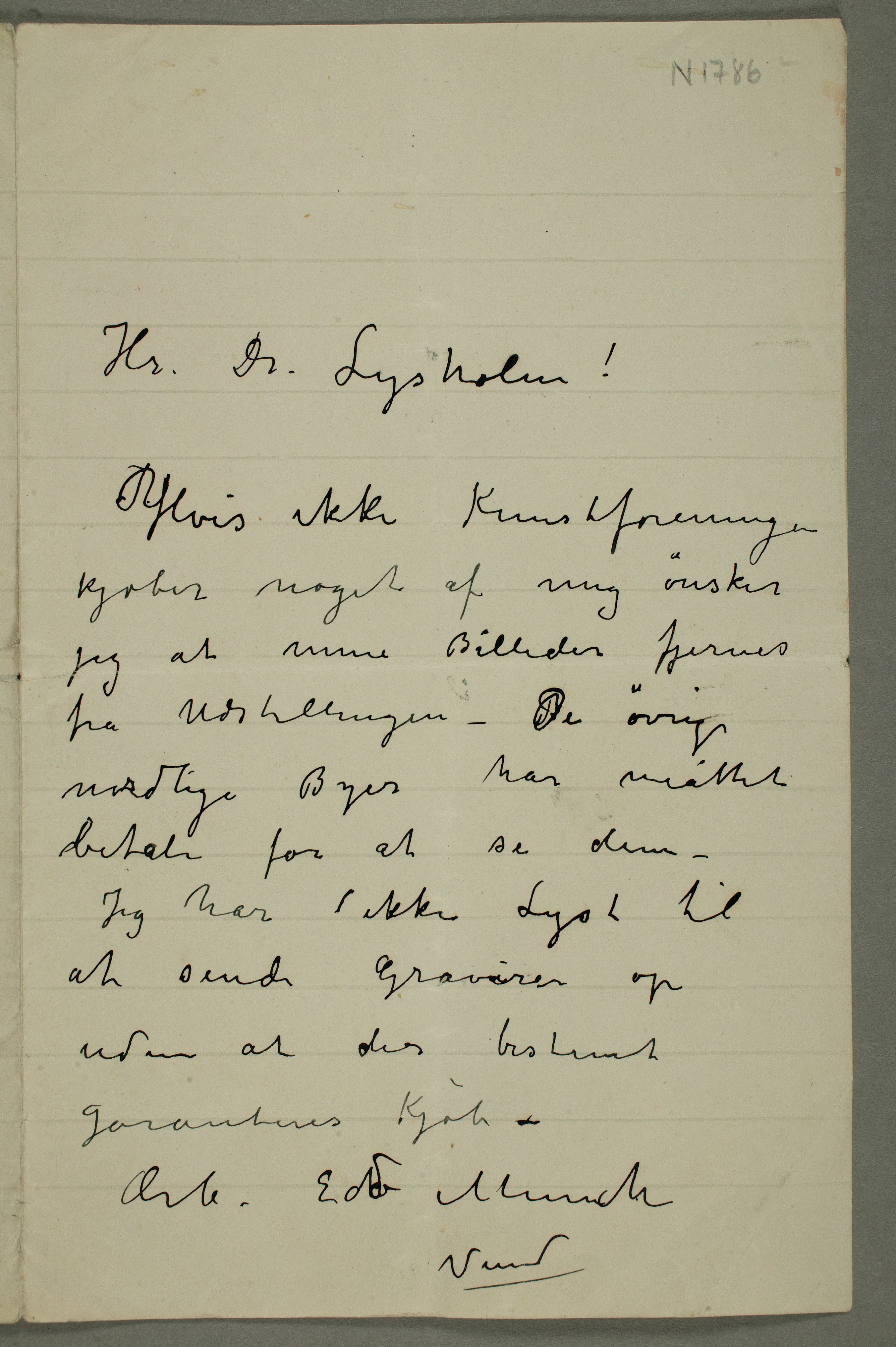 MM N 1786, Munchmuseet. Ikke datert. Brevutkast til Bjarne Lysholm.