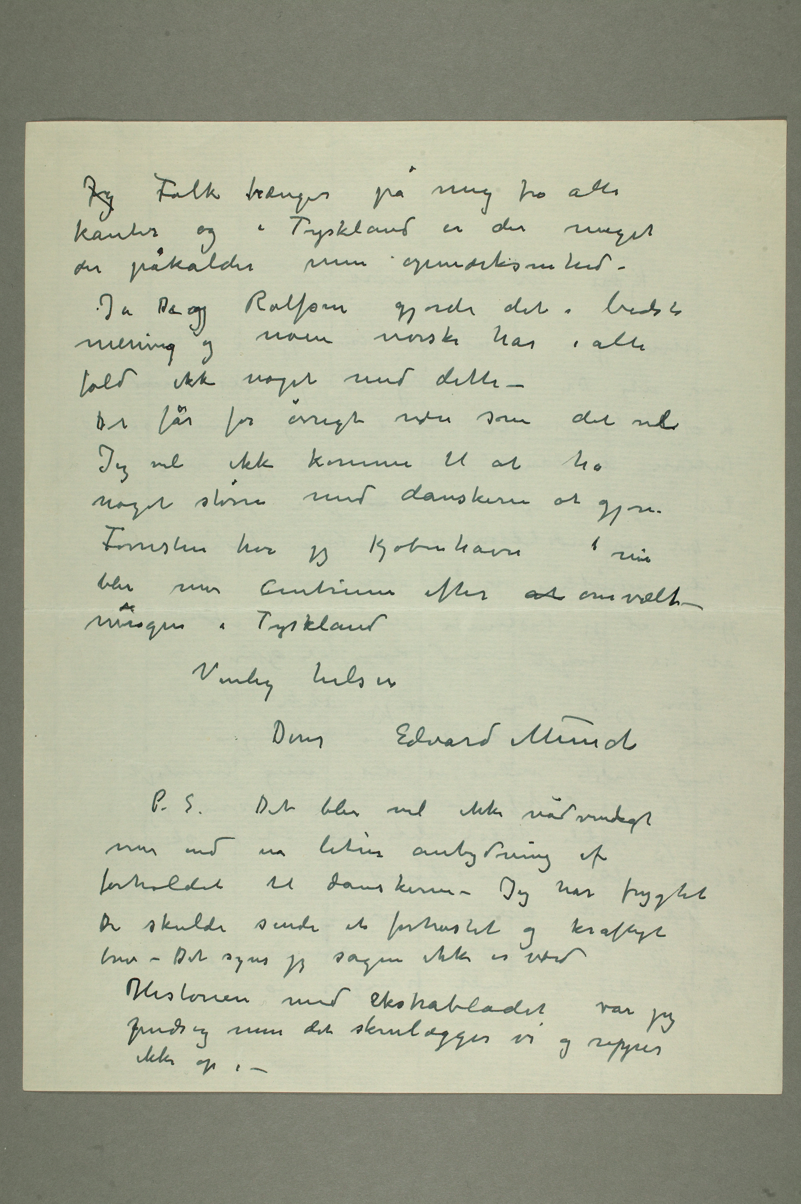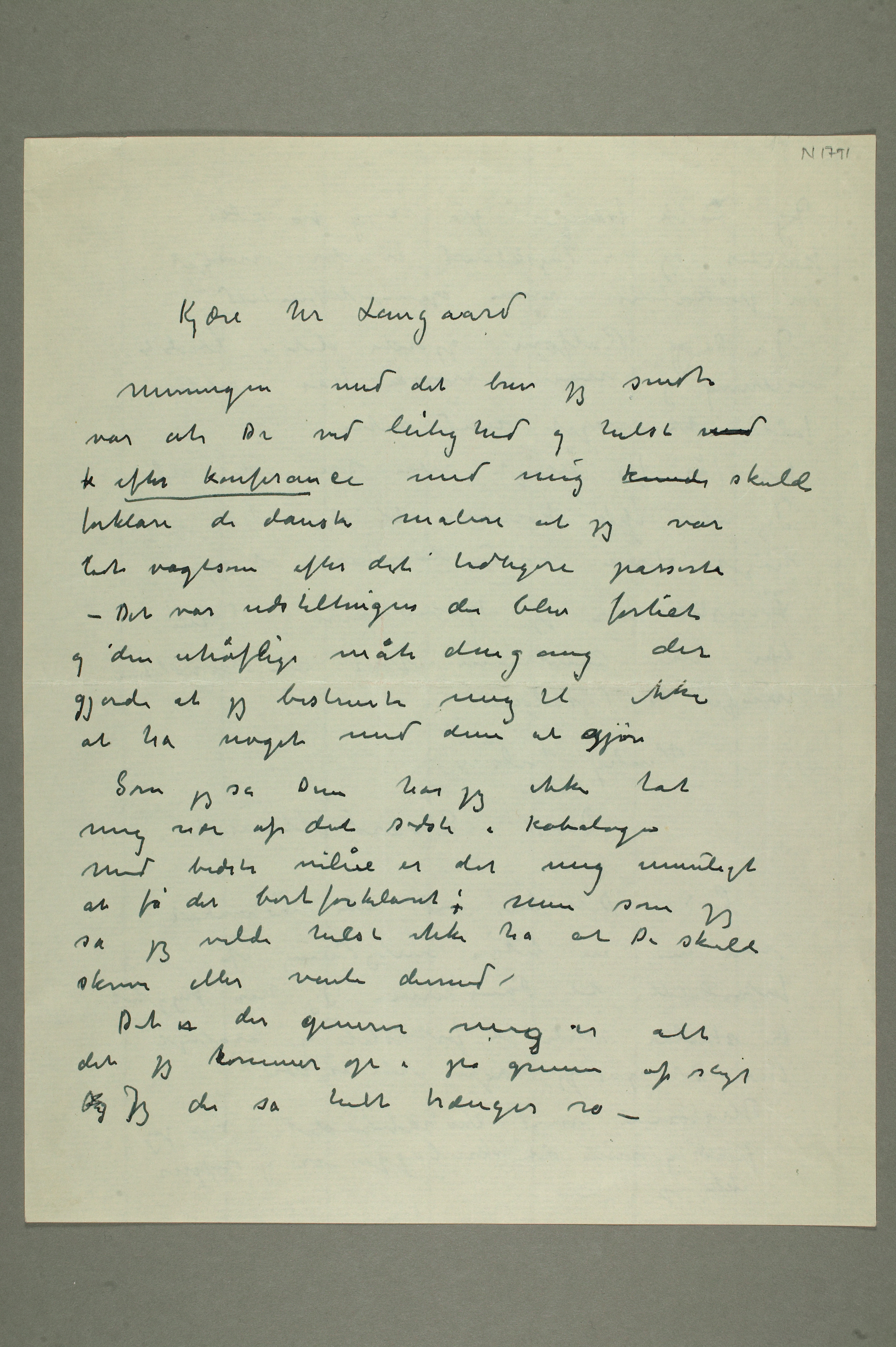 MM N 1791, Munchmuseet. Datert 1934. Brevutkast til Johan Langaard.