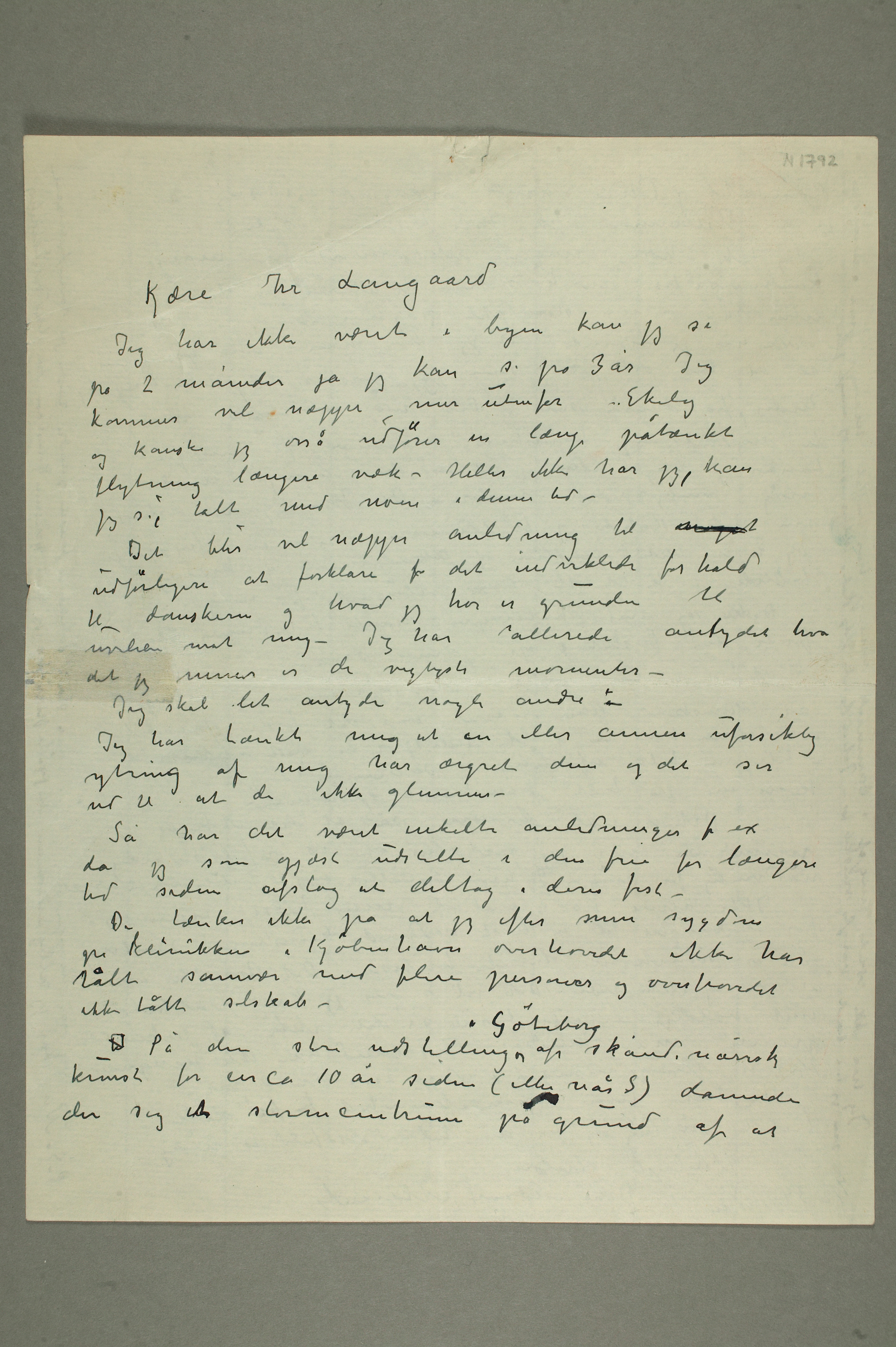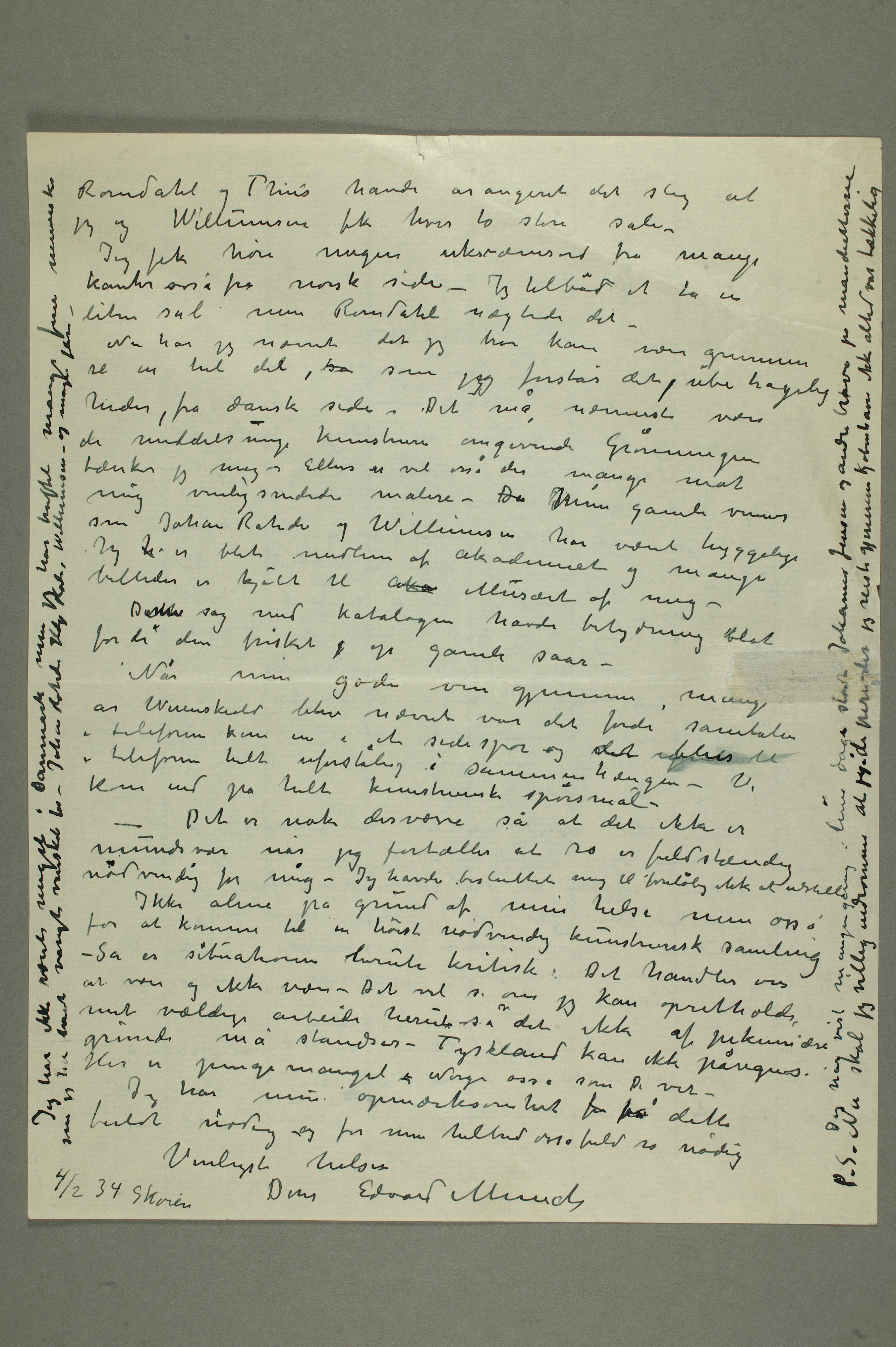 MM N 1792, Munchmuseet. Datert 4.2.1934. Brevutkast til Johan Langaard.