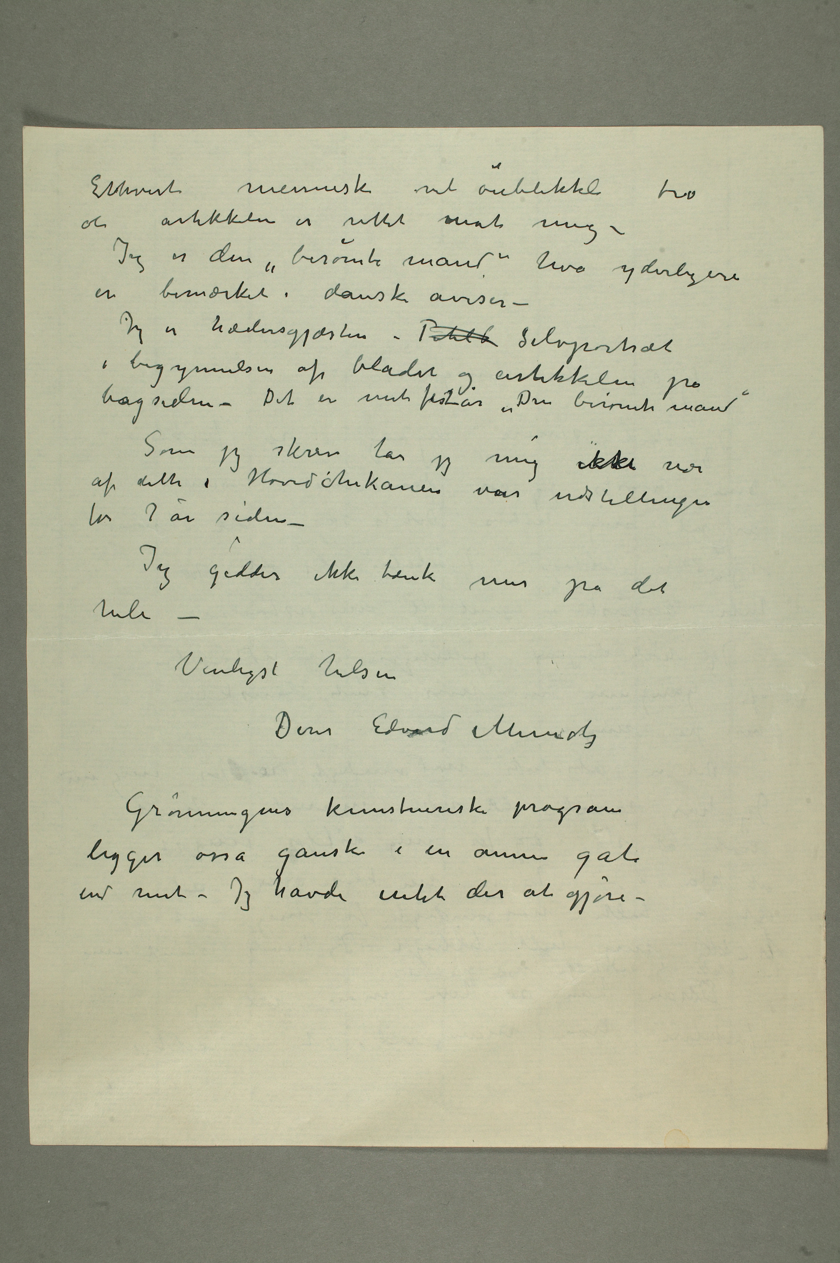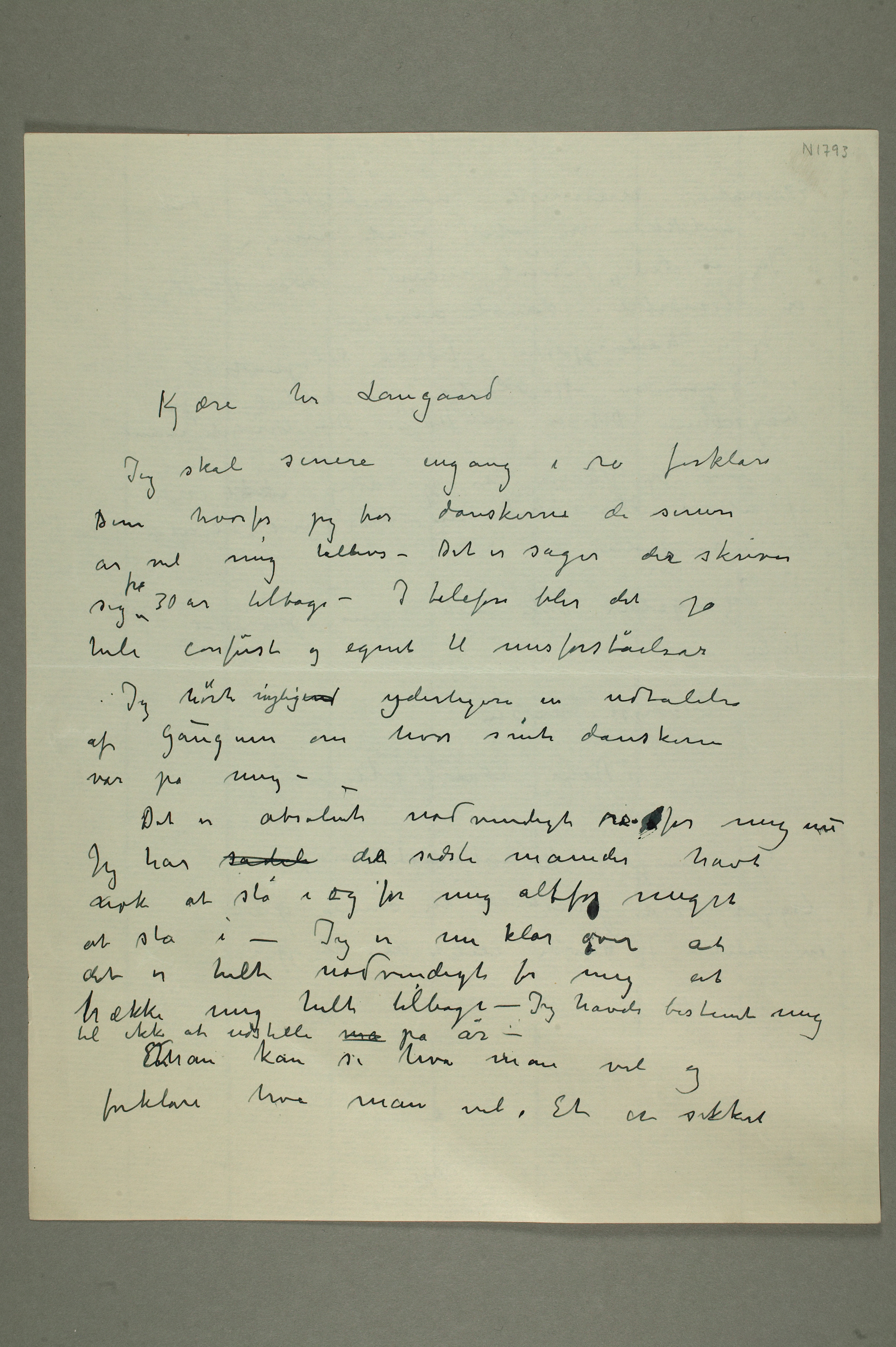 MM N 1793, Munchmuseet. Datert 1934. Brevutkast til Johan Langaard.