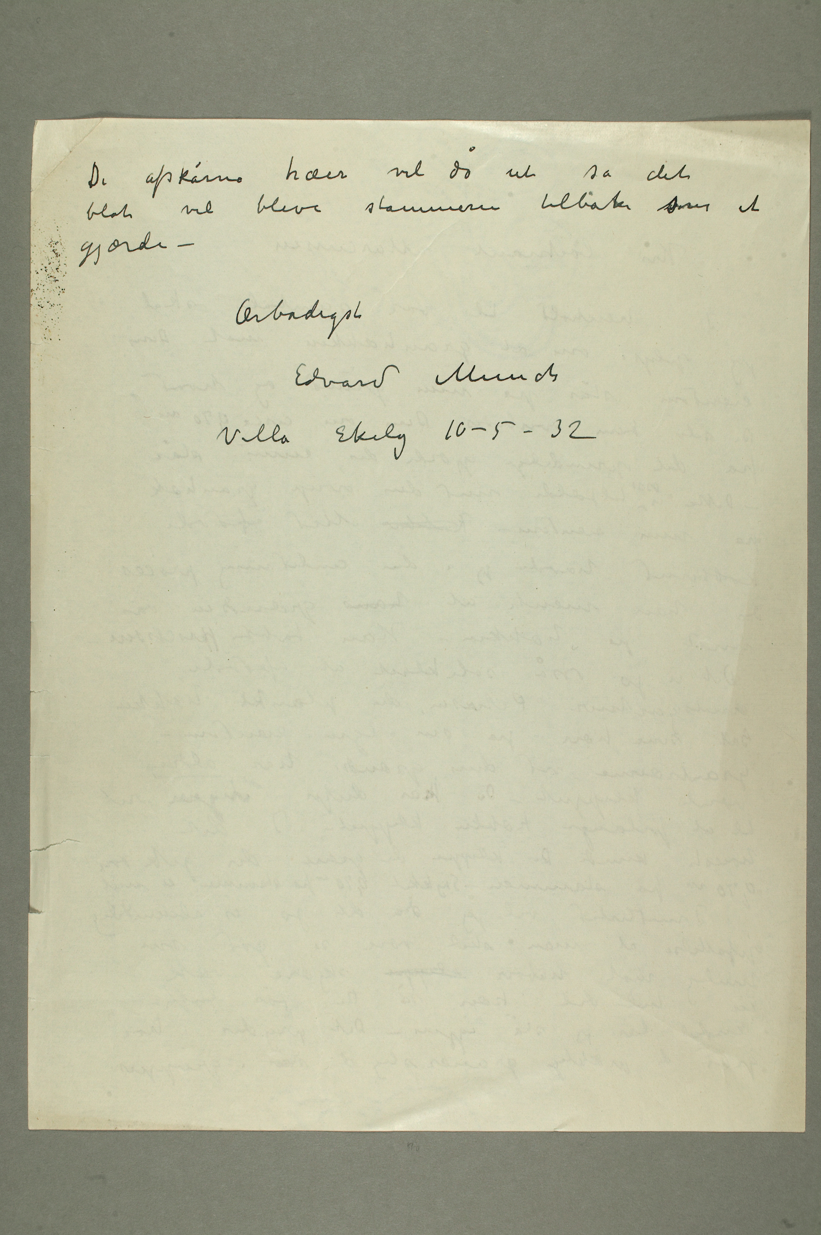 MM N 1887, Munchmuseet. Datert 10.5.1932. Brevutkast til P. Marcussen.