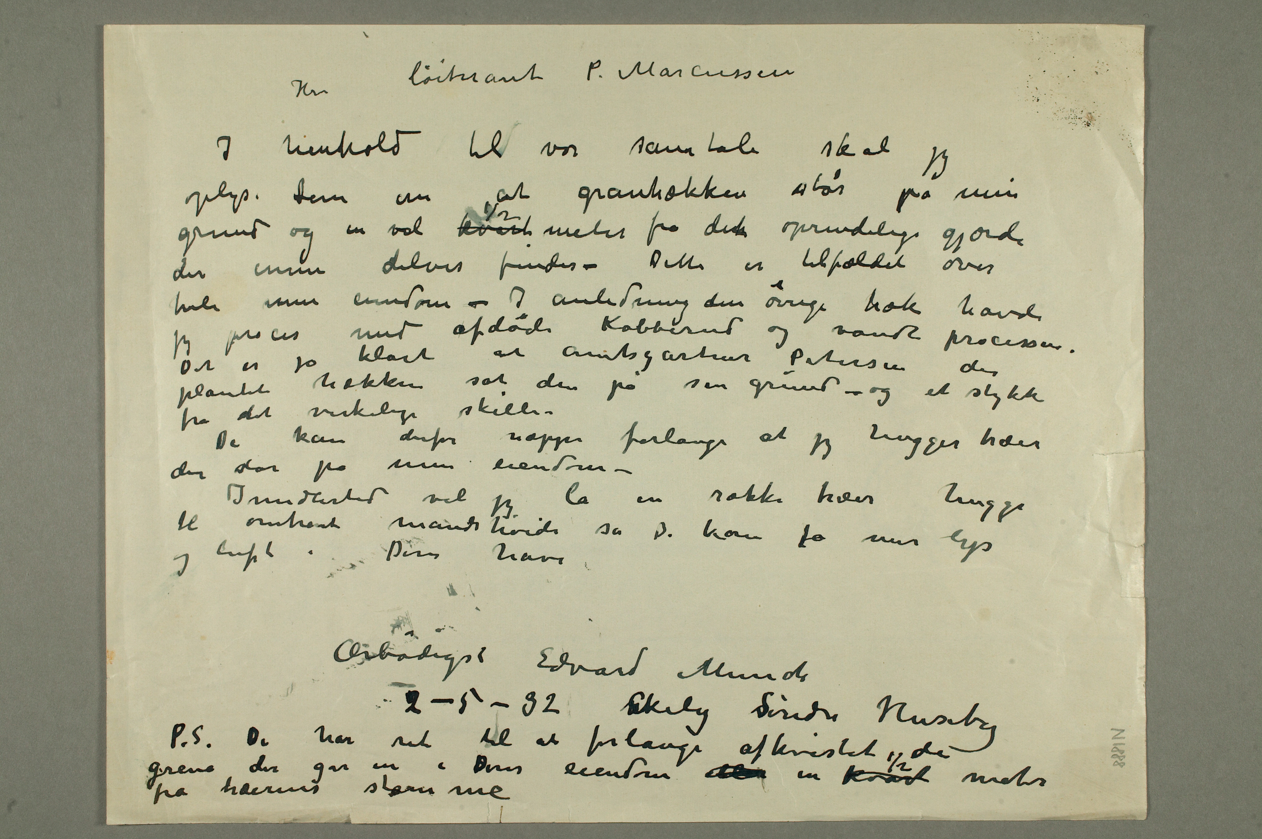 MM N 1888, Munchmuseet. Datert 2.5.1932. Brevutkast til P. Marcussen.
