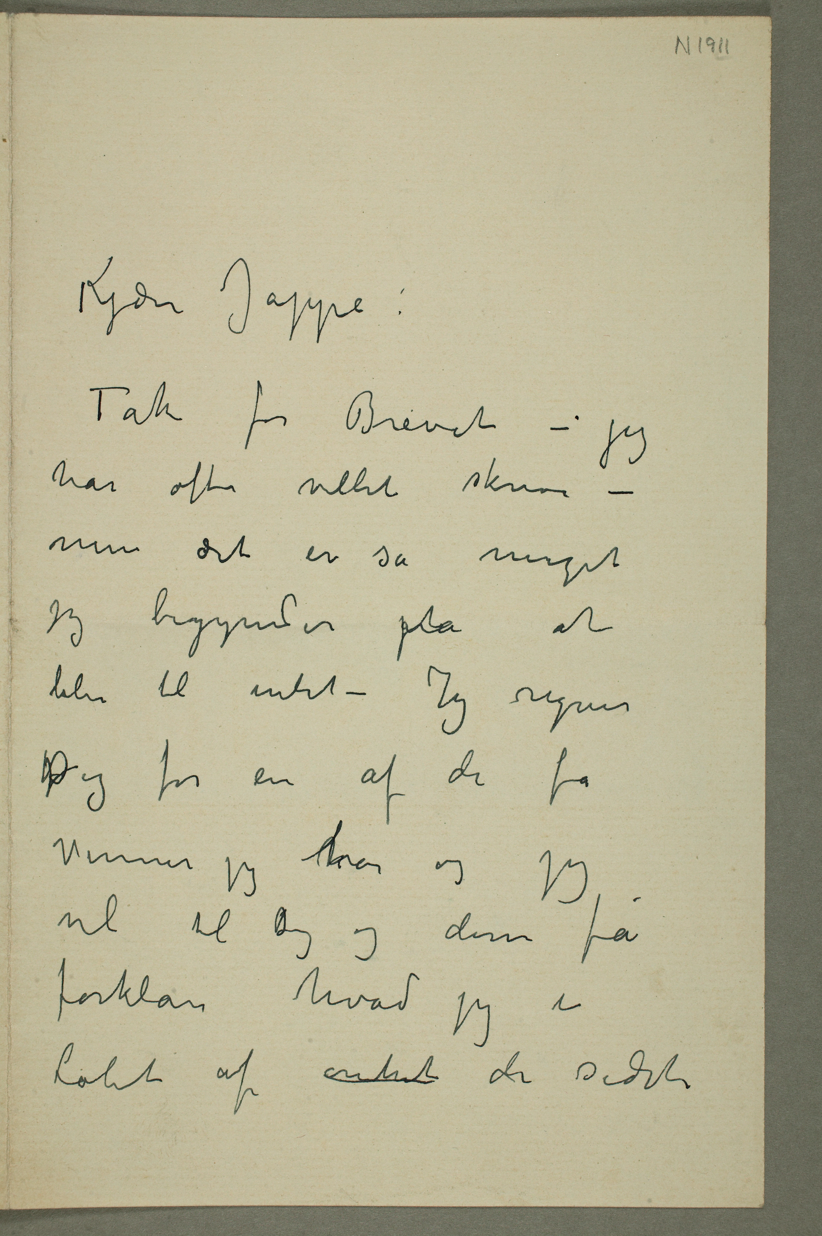 MM N 1911, Munchmuseet. Datert [??].1.1908. Brevutkast til Jappe Nilssen.