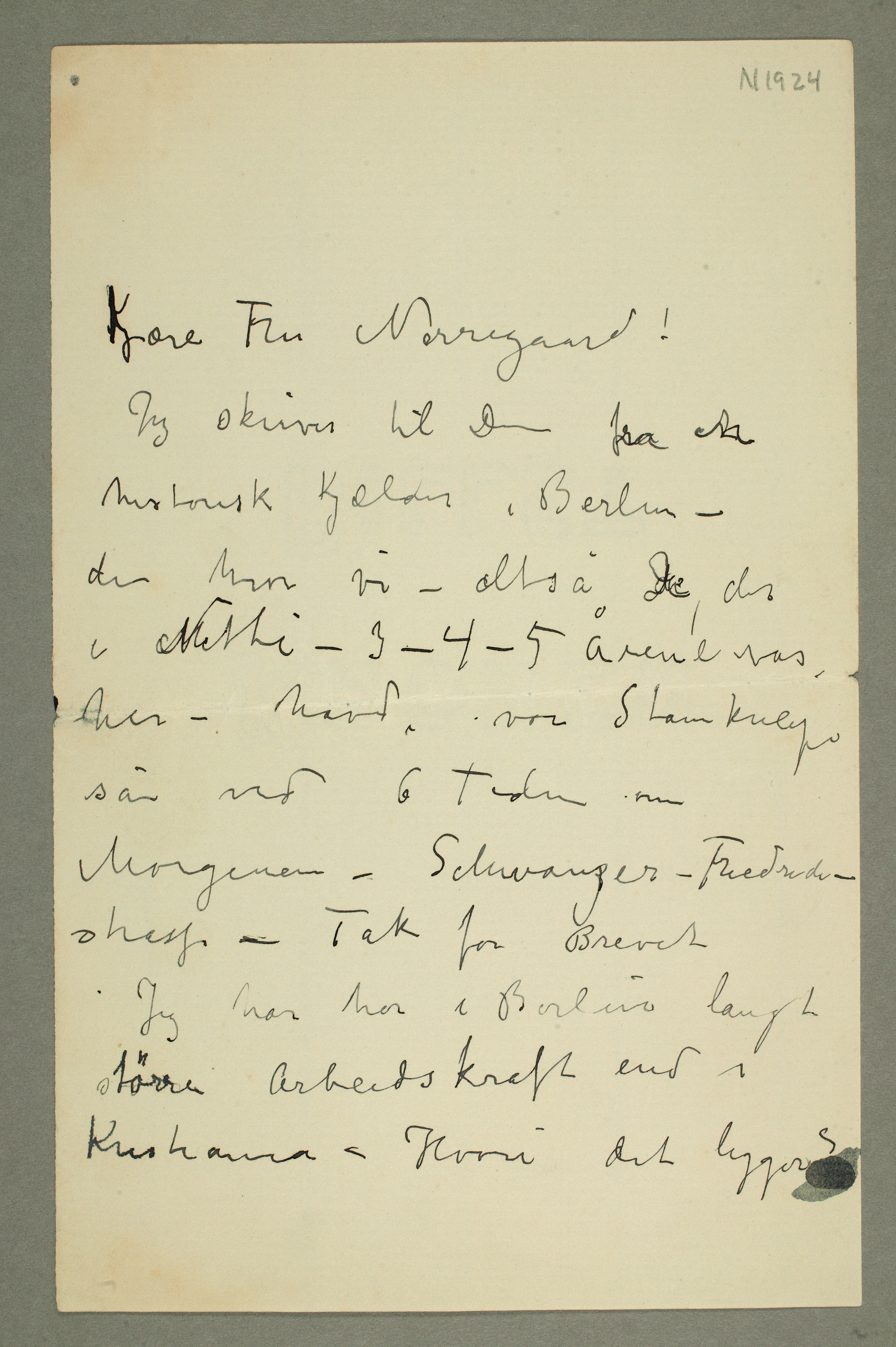 MM N 1924, Munchmuseet. Ikke datert. Brevutkast til Aase Nørregaard.
