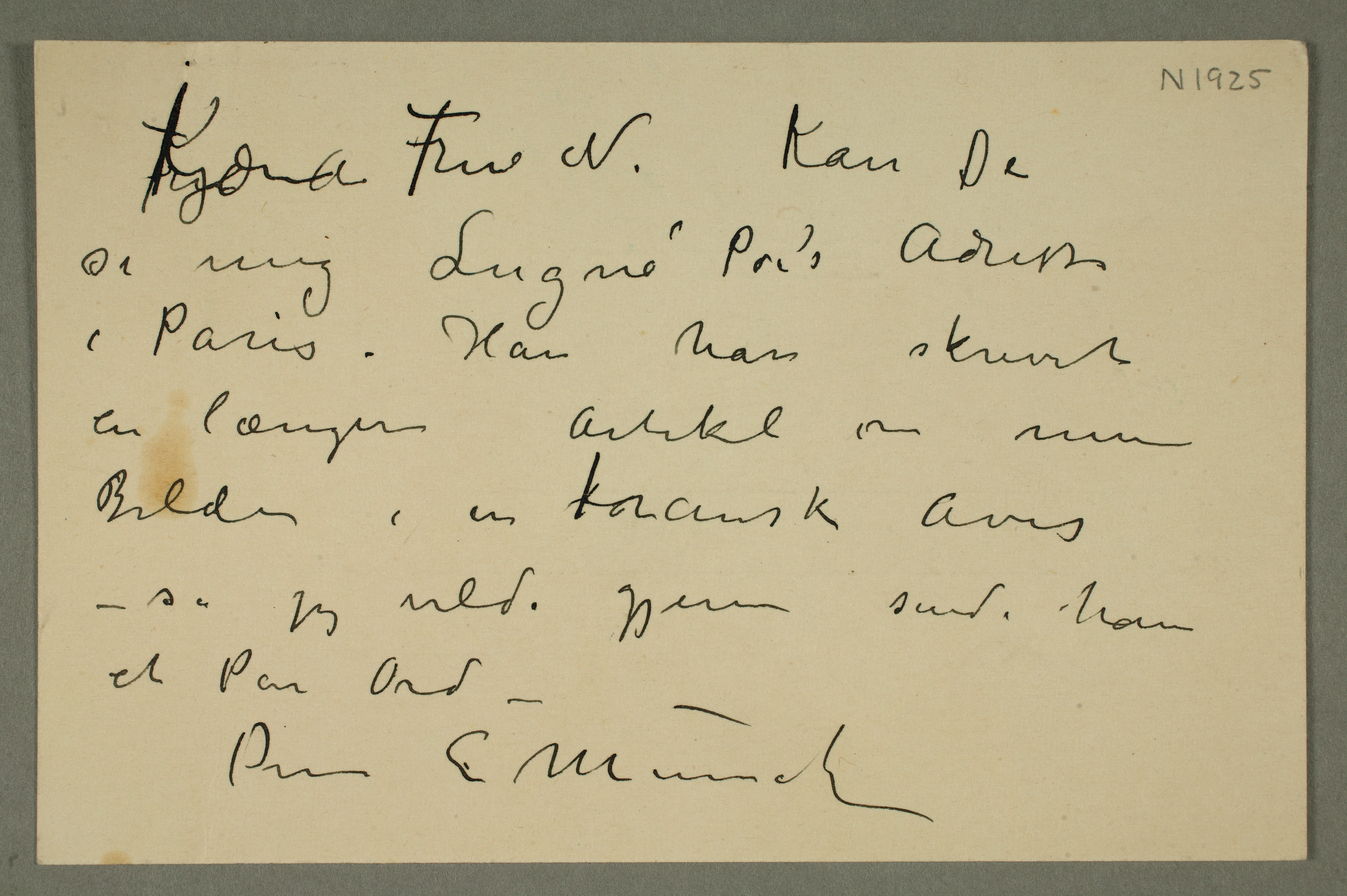 MM N 1925, Munchmuseet. Datert 1895–1896. Brevutkast til Aase Nørregaard.