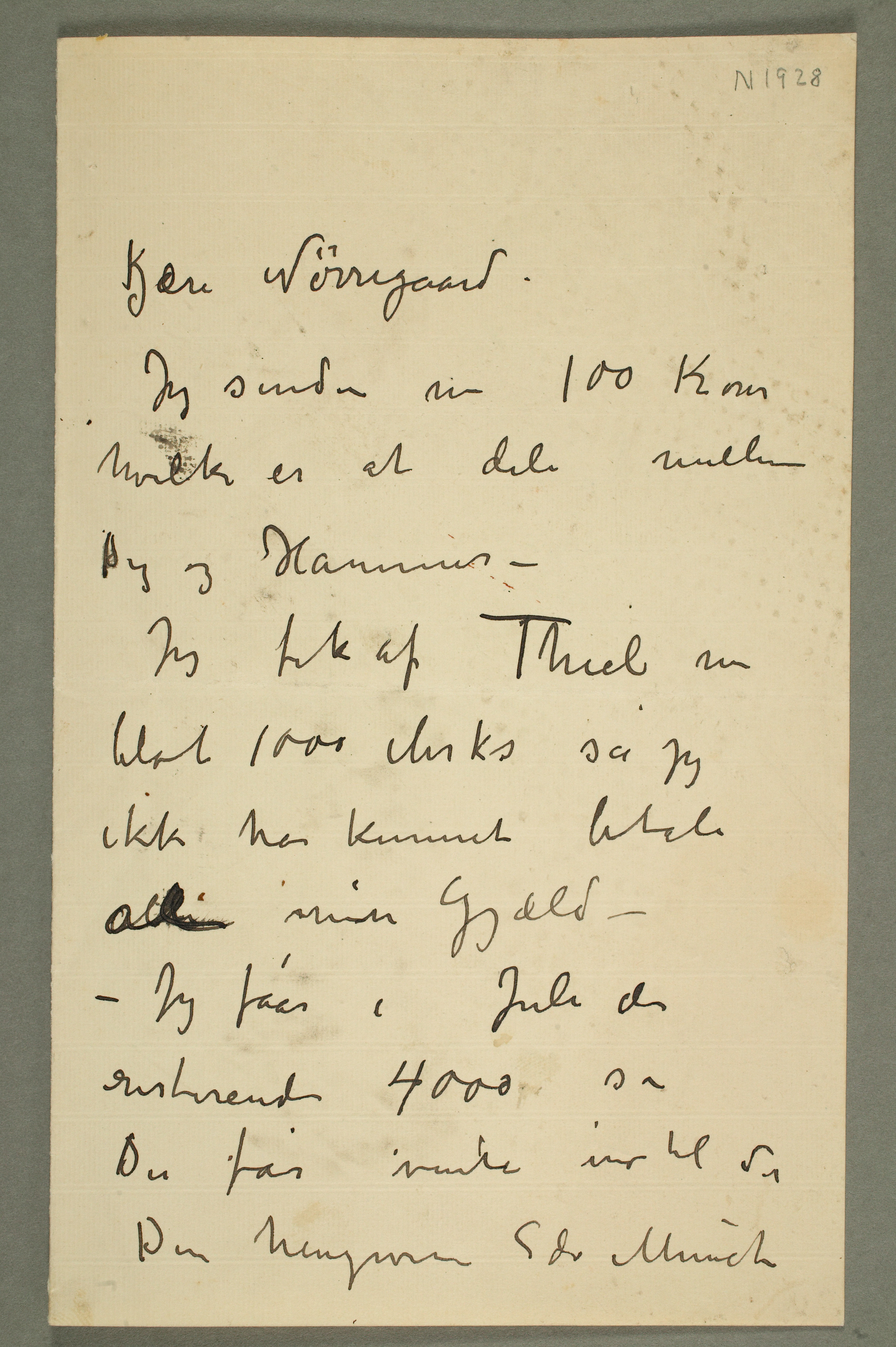 MM N 1928, Munchmuseet. Datert 1907–1908. Brevutkast til Harald Nørregaard.