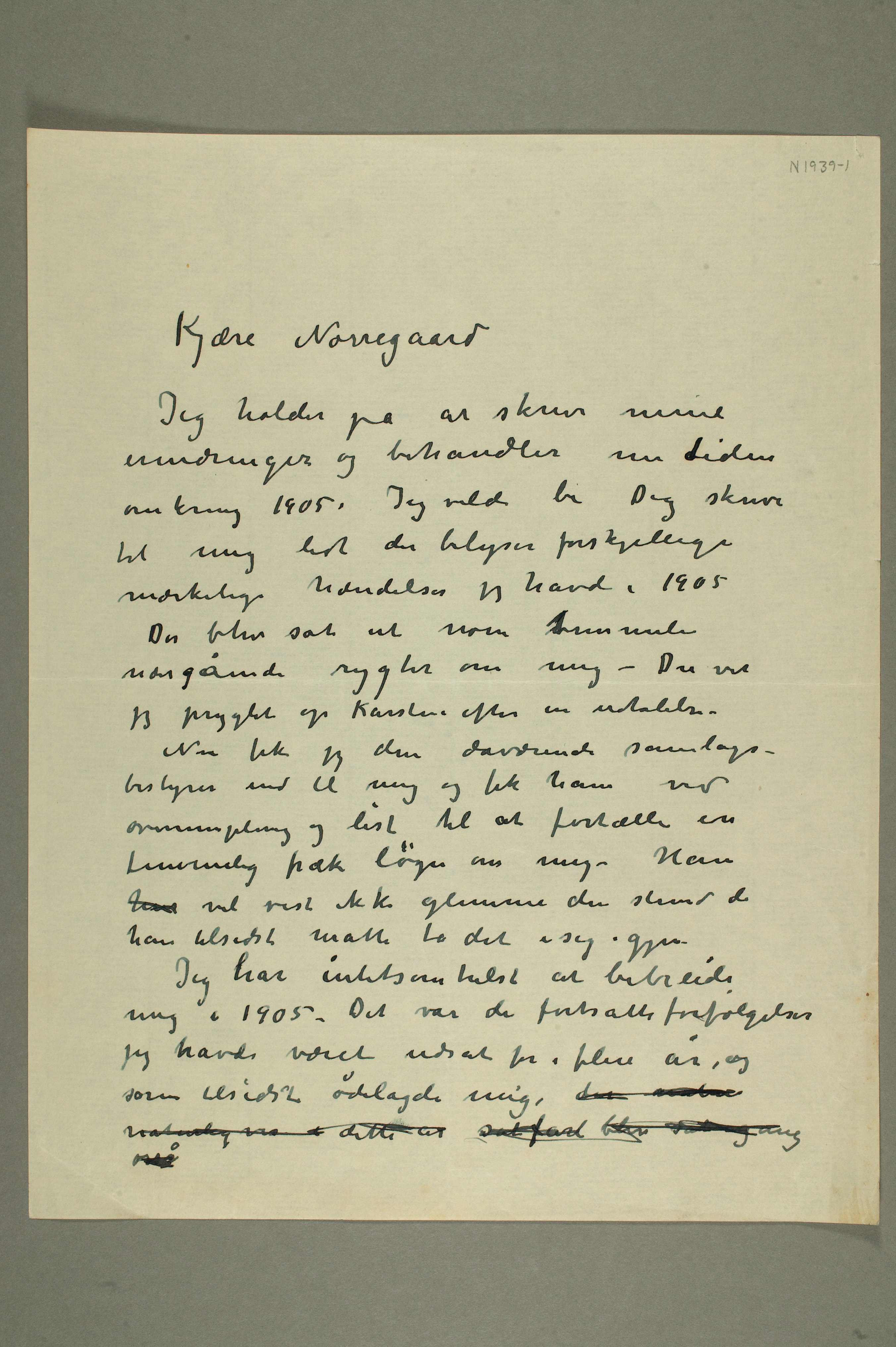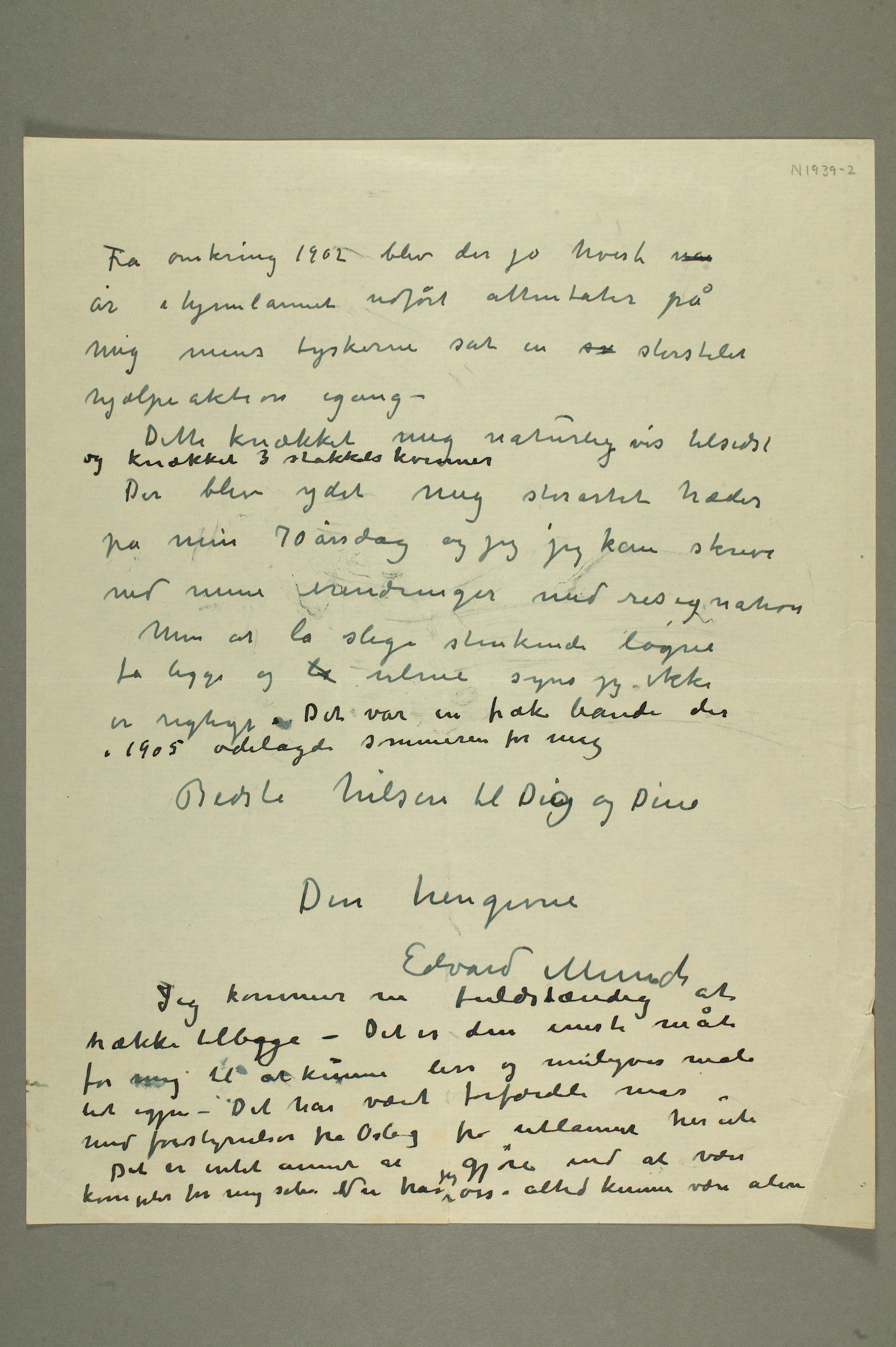 MM N 1939, Munchmuseet. Datert 1934–1936. Brevutkast til Harald Nørregaard.