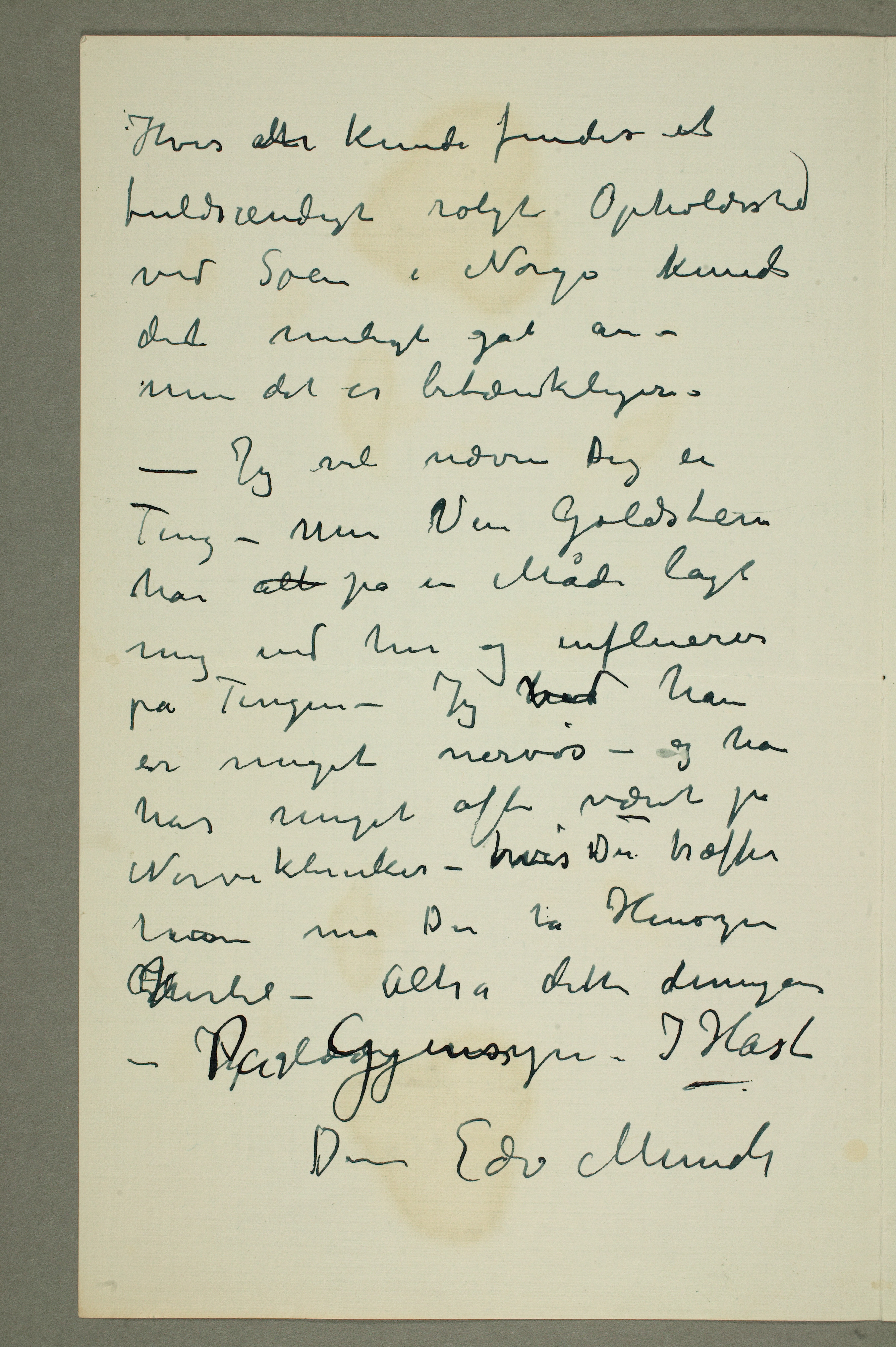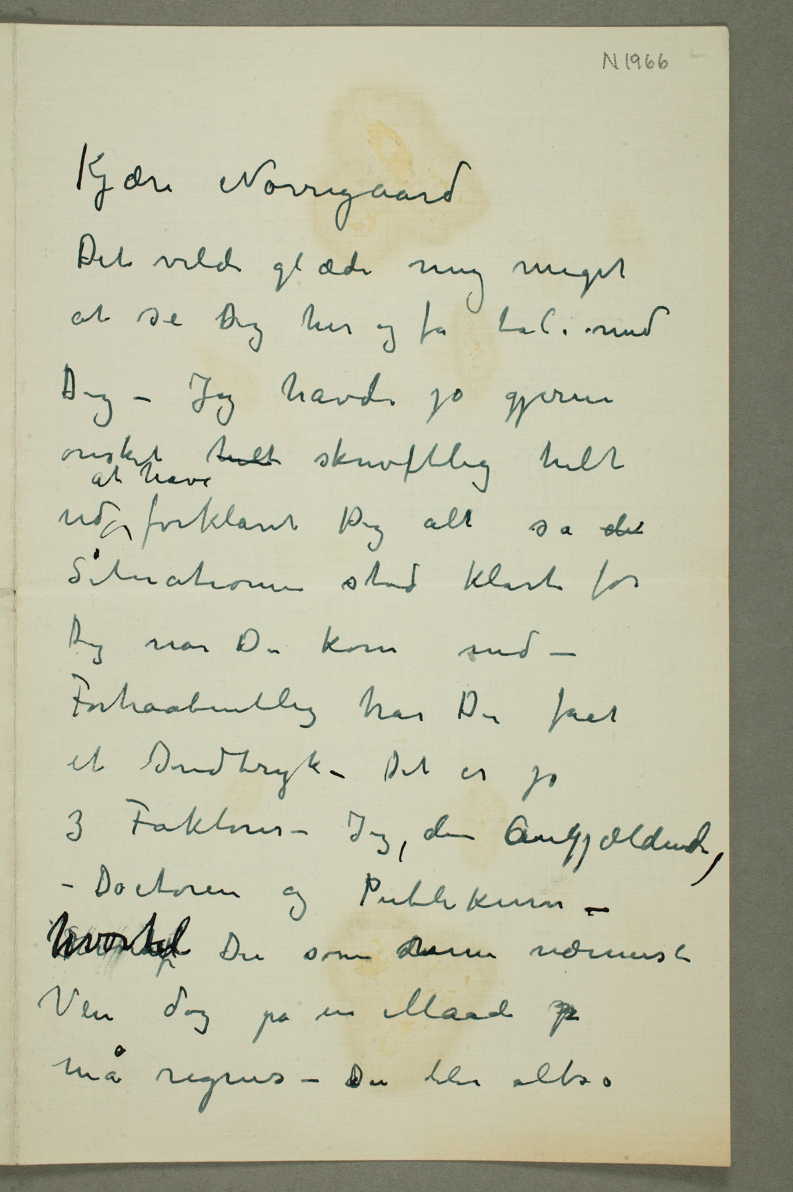 MM N 1966, Munchmuseet. Datert 1908–1909. Brevutkast til Harald Nørregaard.