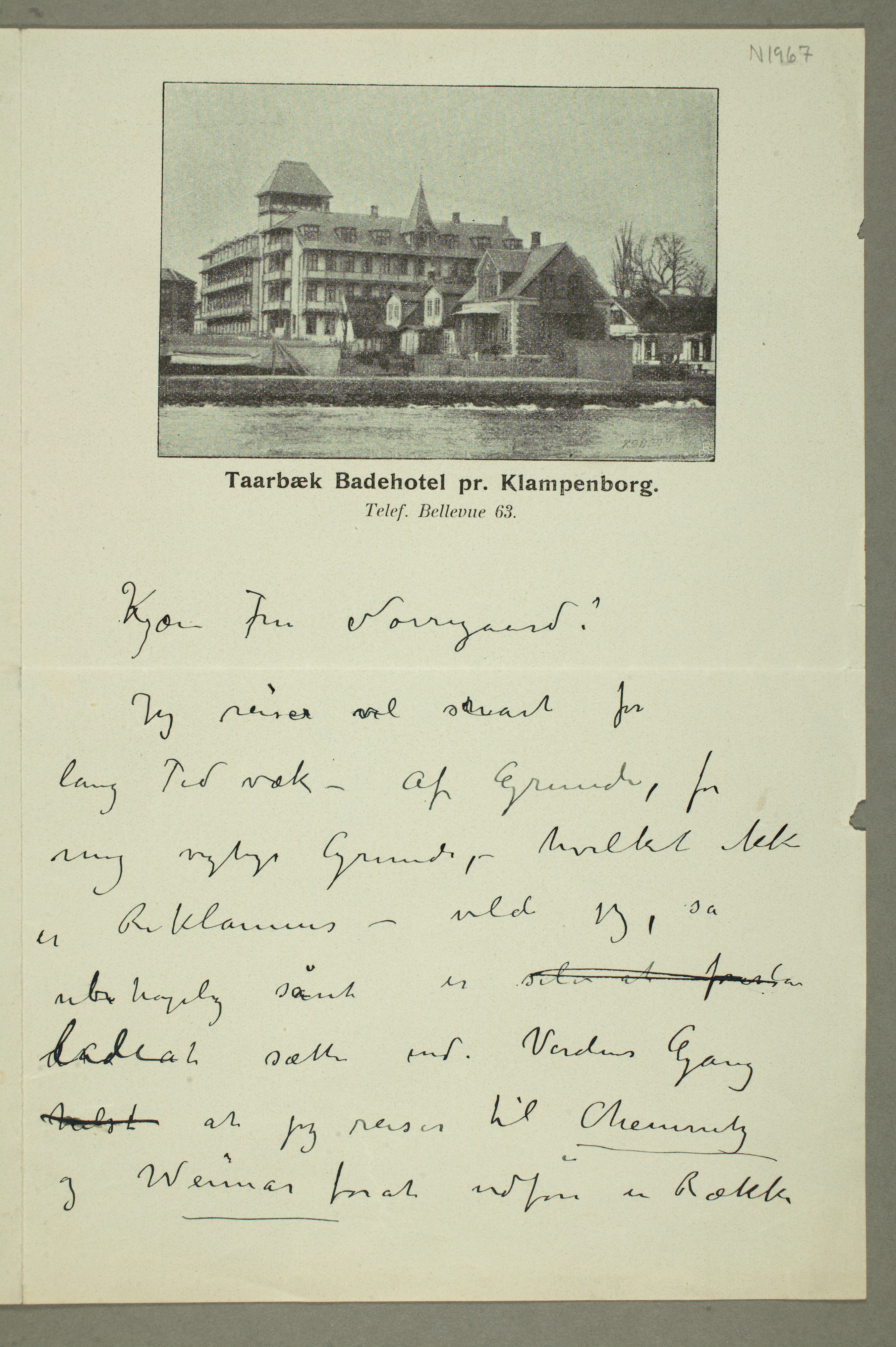 MM N 1967, Munchmuseet. Datert 1905. Brevutkast til Aase Nørregaard.