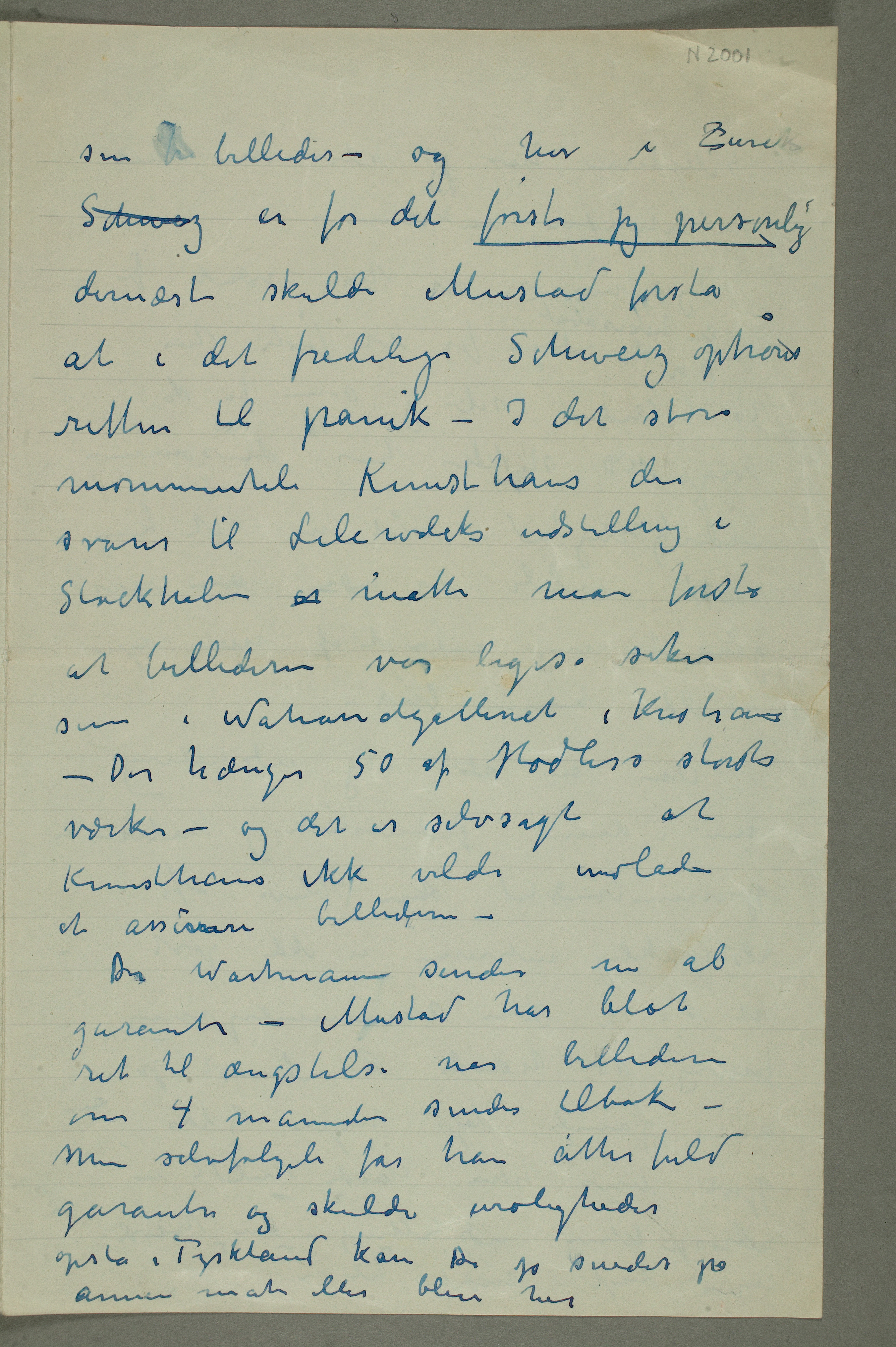 MM N 2001, Munchmuseet. Datert 1922. Brevutkast til Ludvig Ravensberg.
