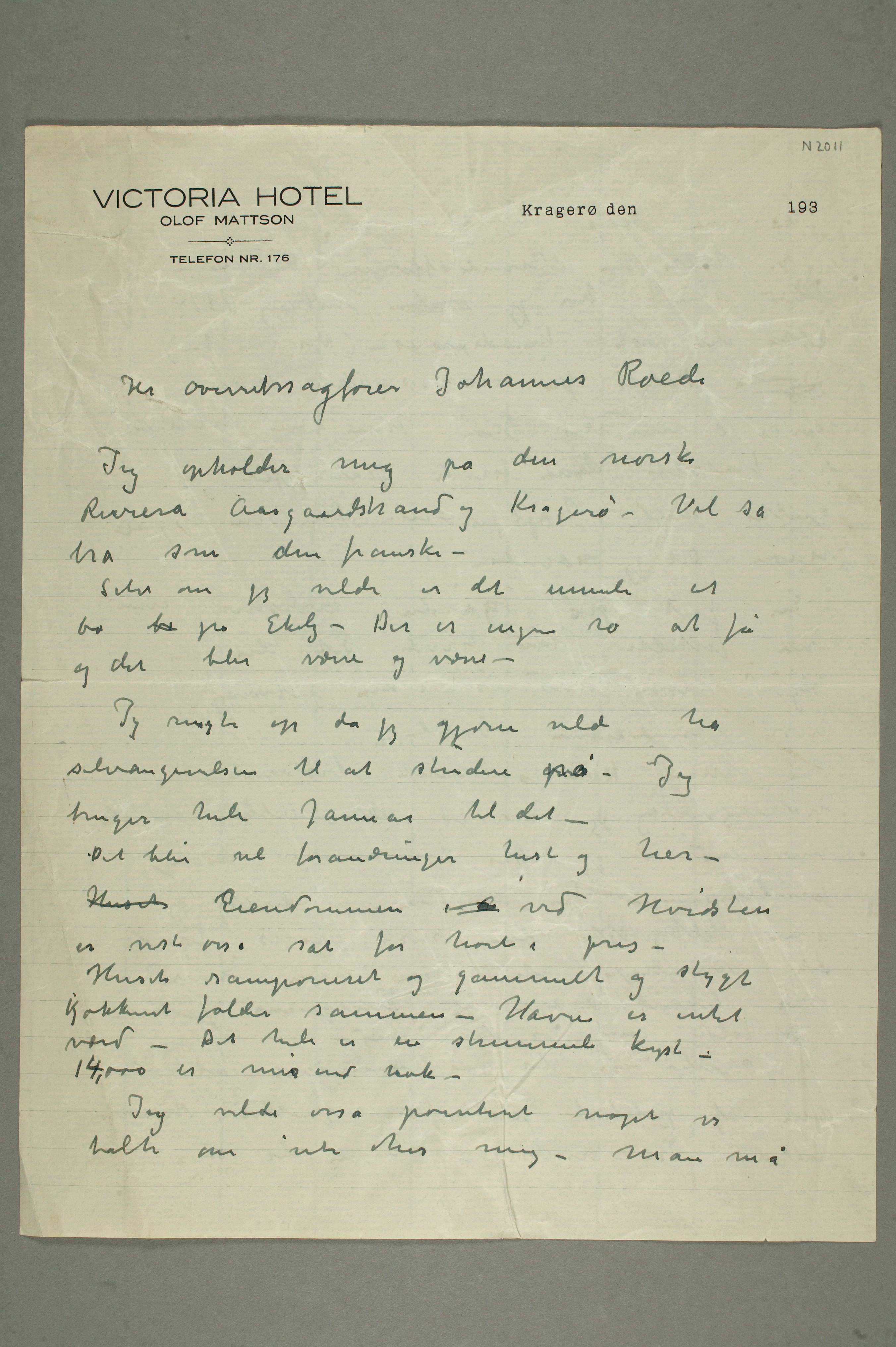 MM N 2011, Munchmuseet. Ikke datert. Brevutkast til Johannes Roede.