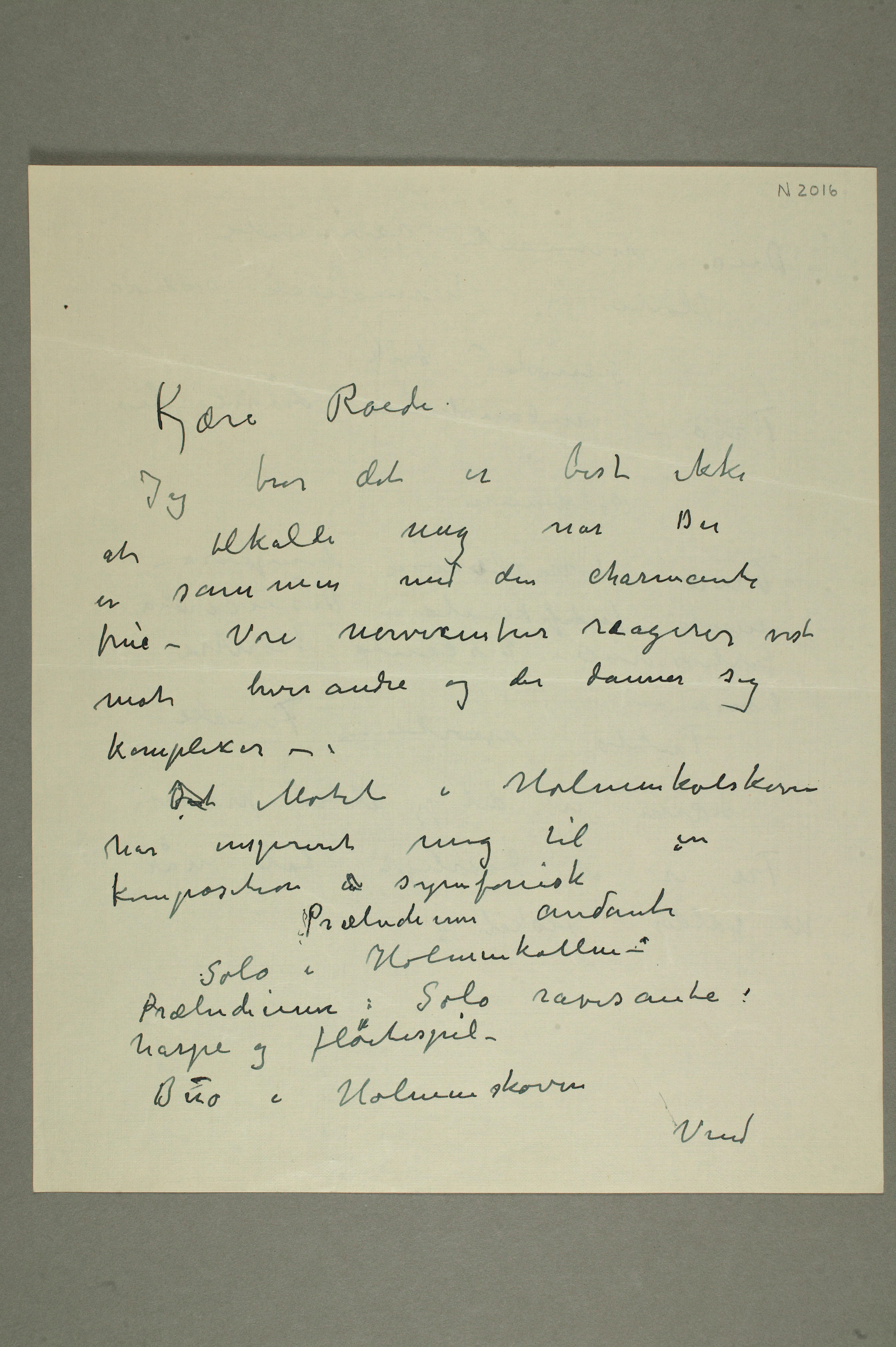 MM N 2016, Munchmuseet. Ikke datert. Brevutkast til Halfdan Roede.