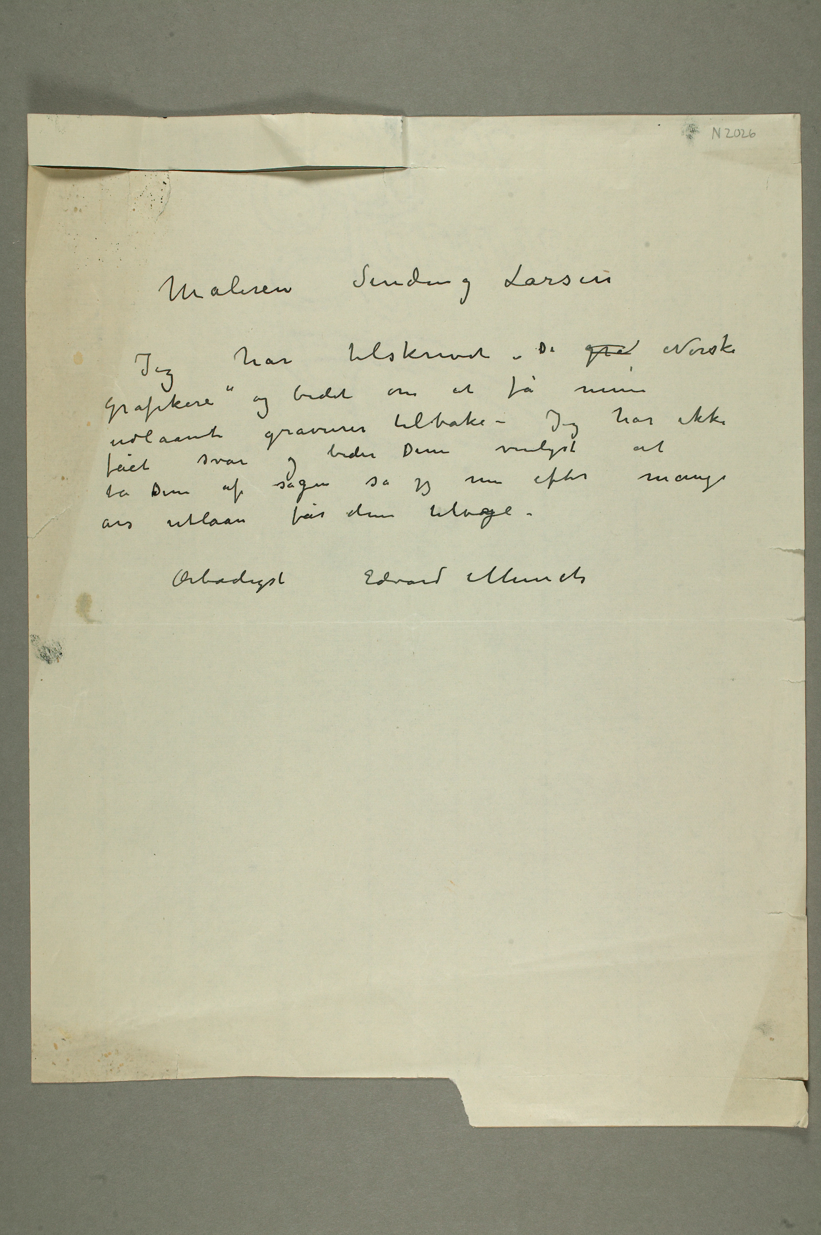 MM N 2026, Munchmuseet. Ikke datert. Brevutkast til Kristofer Sinding-Larsen.