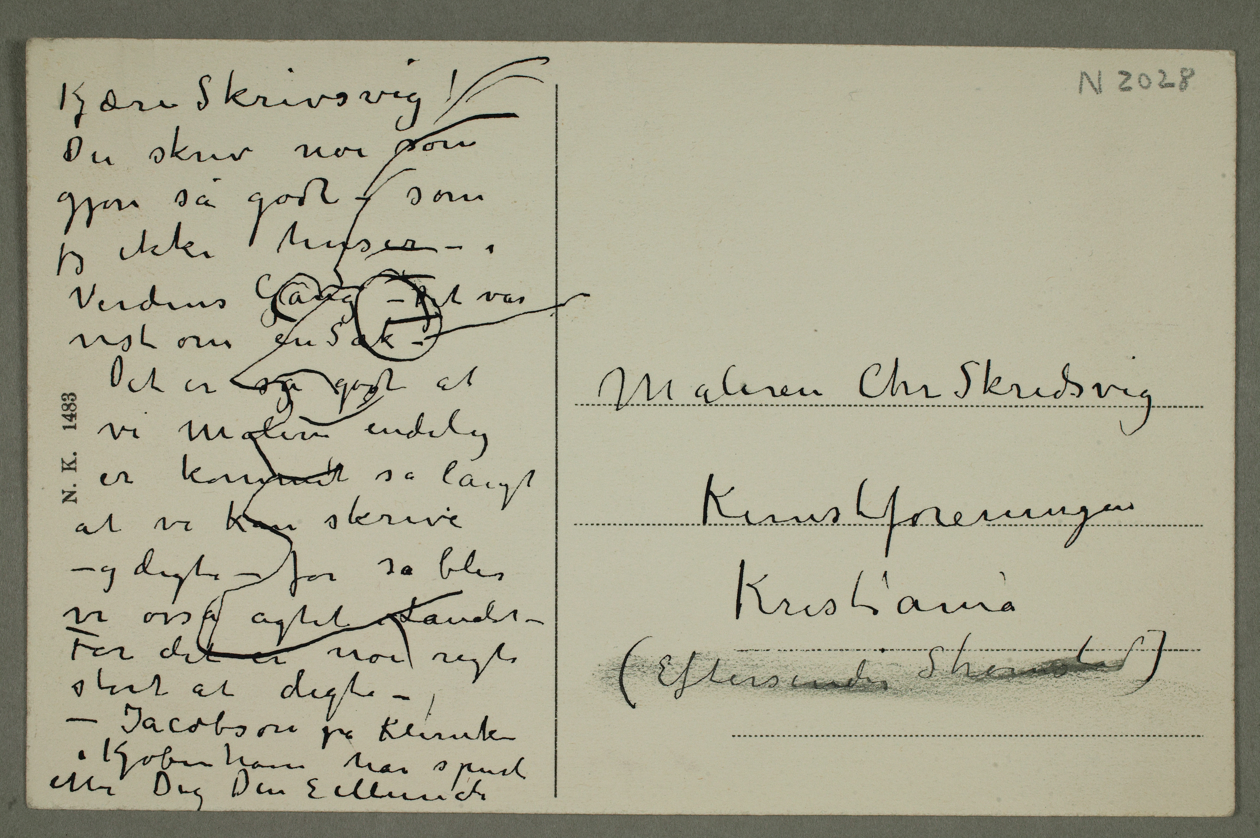 MM N 2028, Munchmuseet. Datert 1909. Brevutkast til Christian Skredsvig .