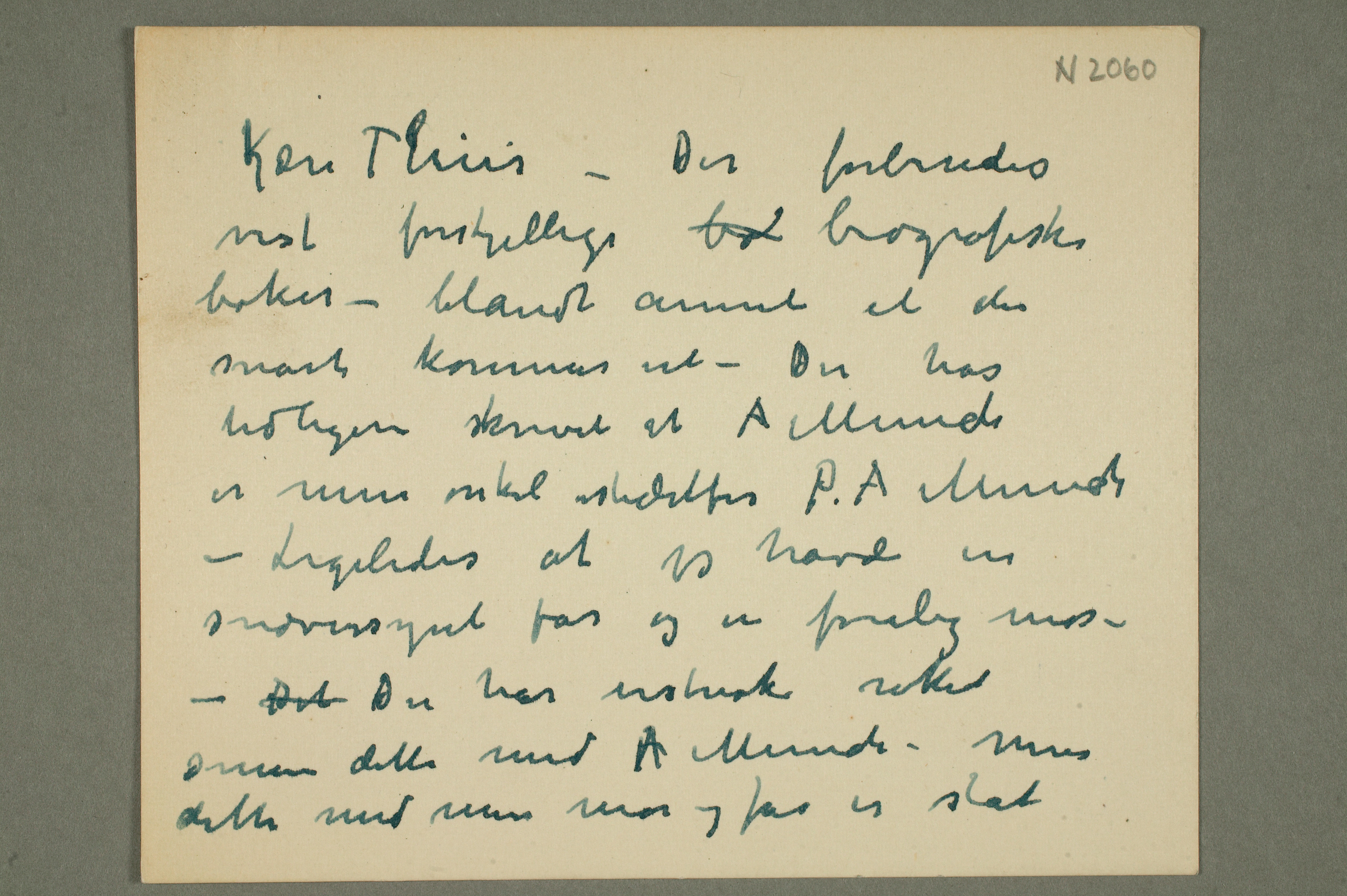 MM N 2060, Munchmuseet. Ikke datert. Brevutkast til Jens Thiis.