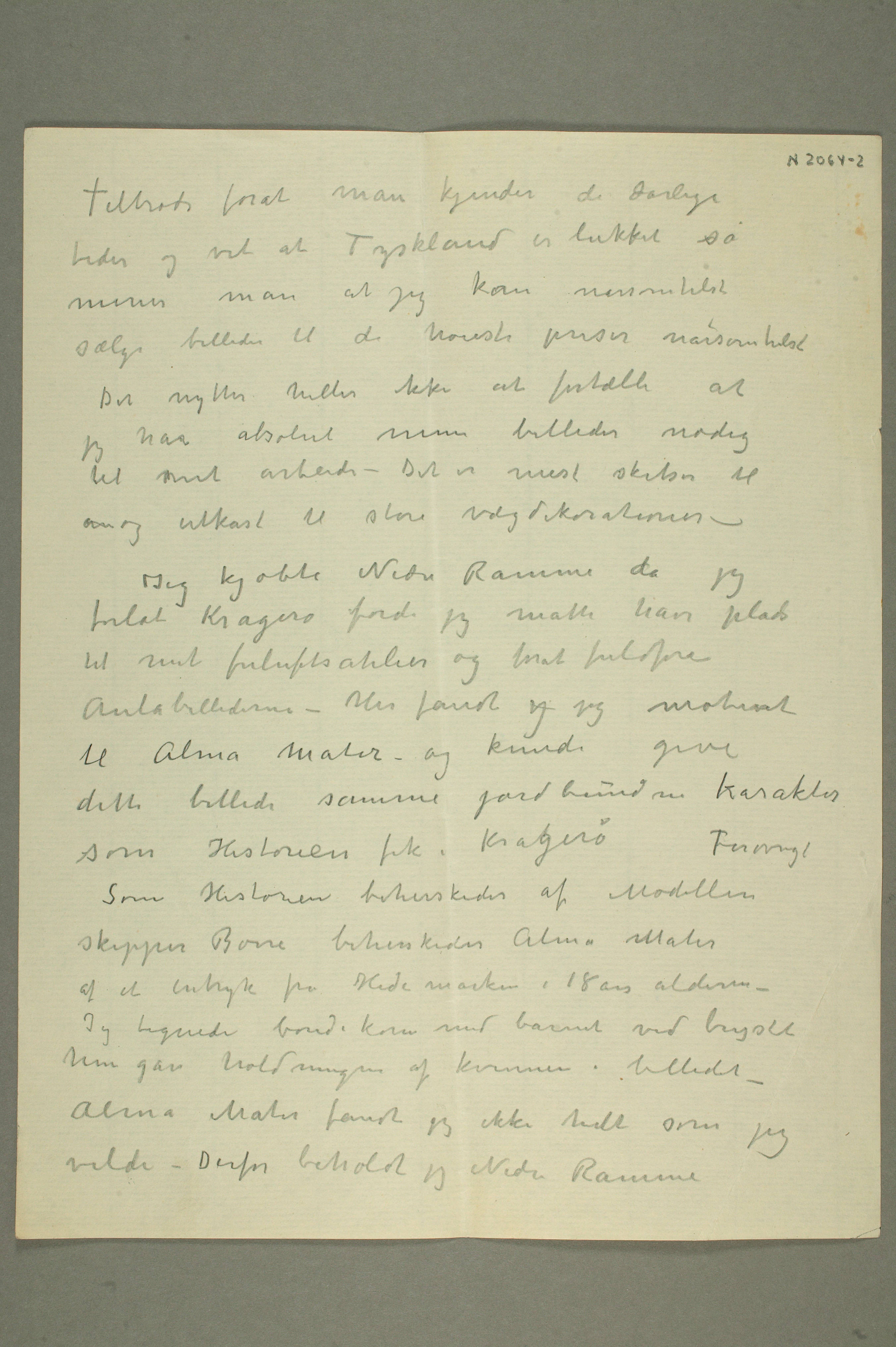 MM N 2064, Munchmuseet. Datert 30.9.1933. Brevutkast til Jens Thiis.