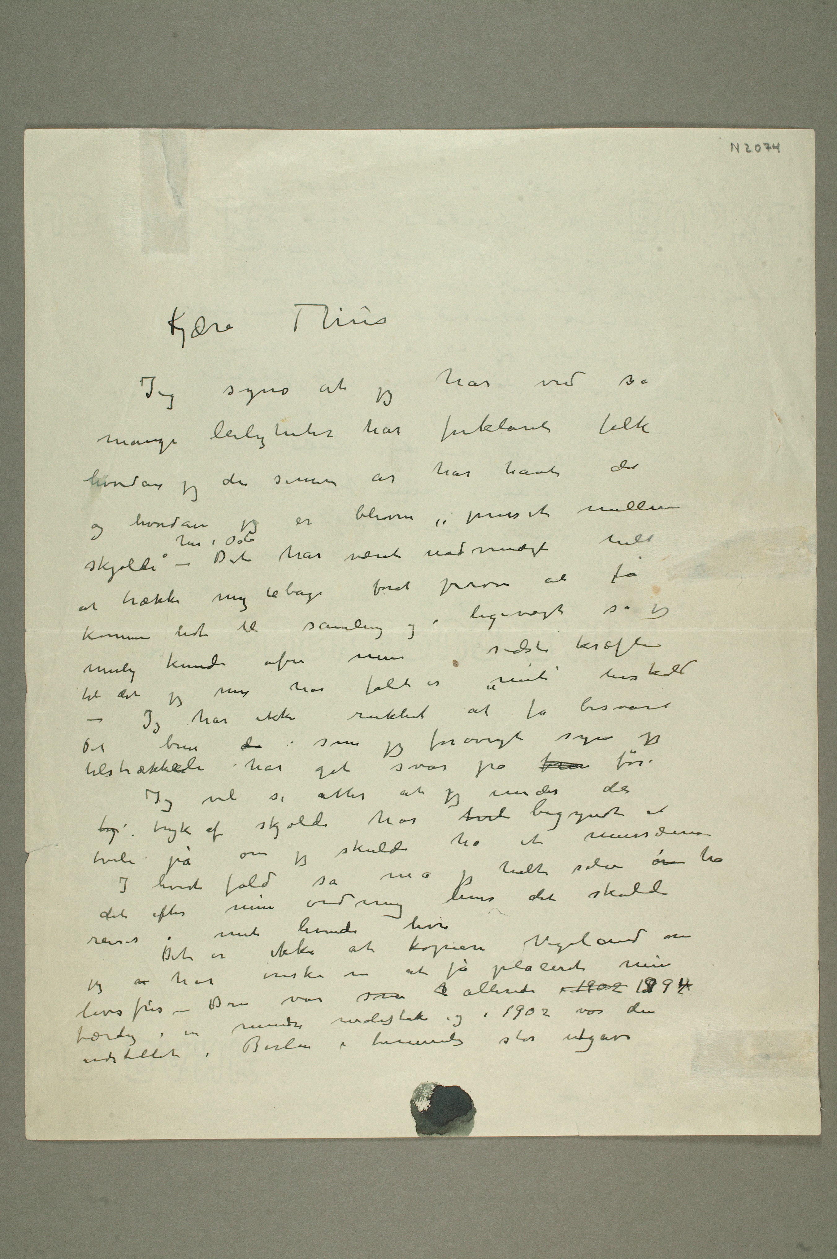 MM N 2074, Munchmuseet. Ikke datert. Brevutkast til Jens Thiis.