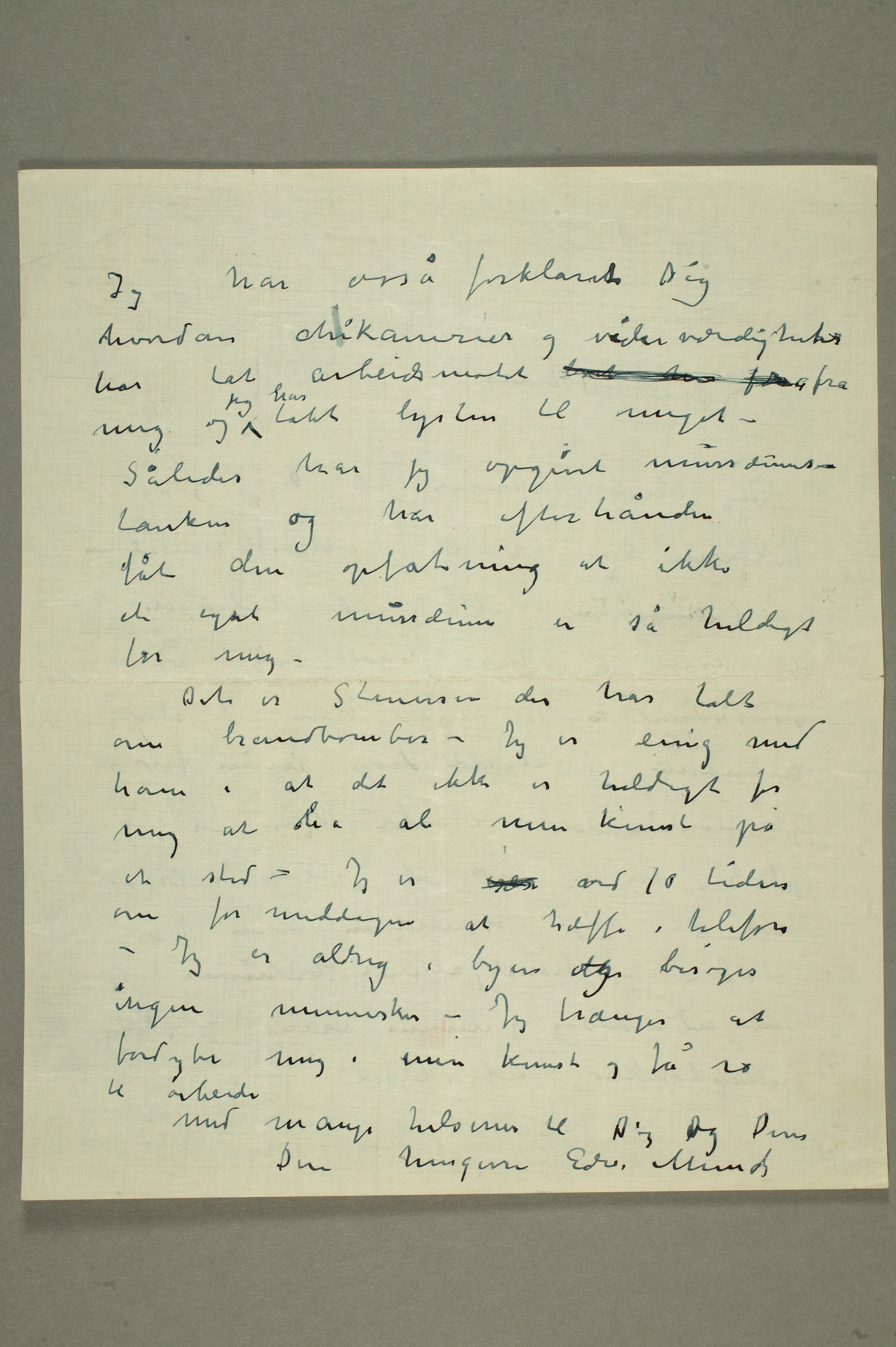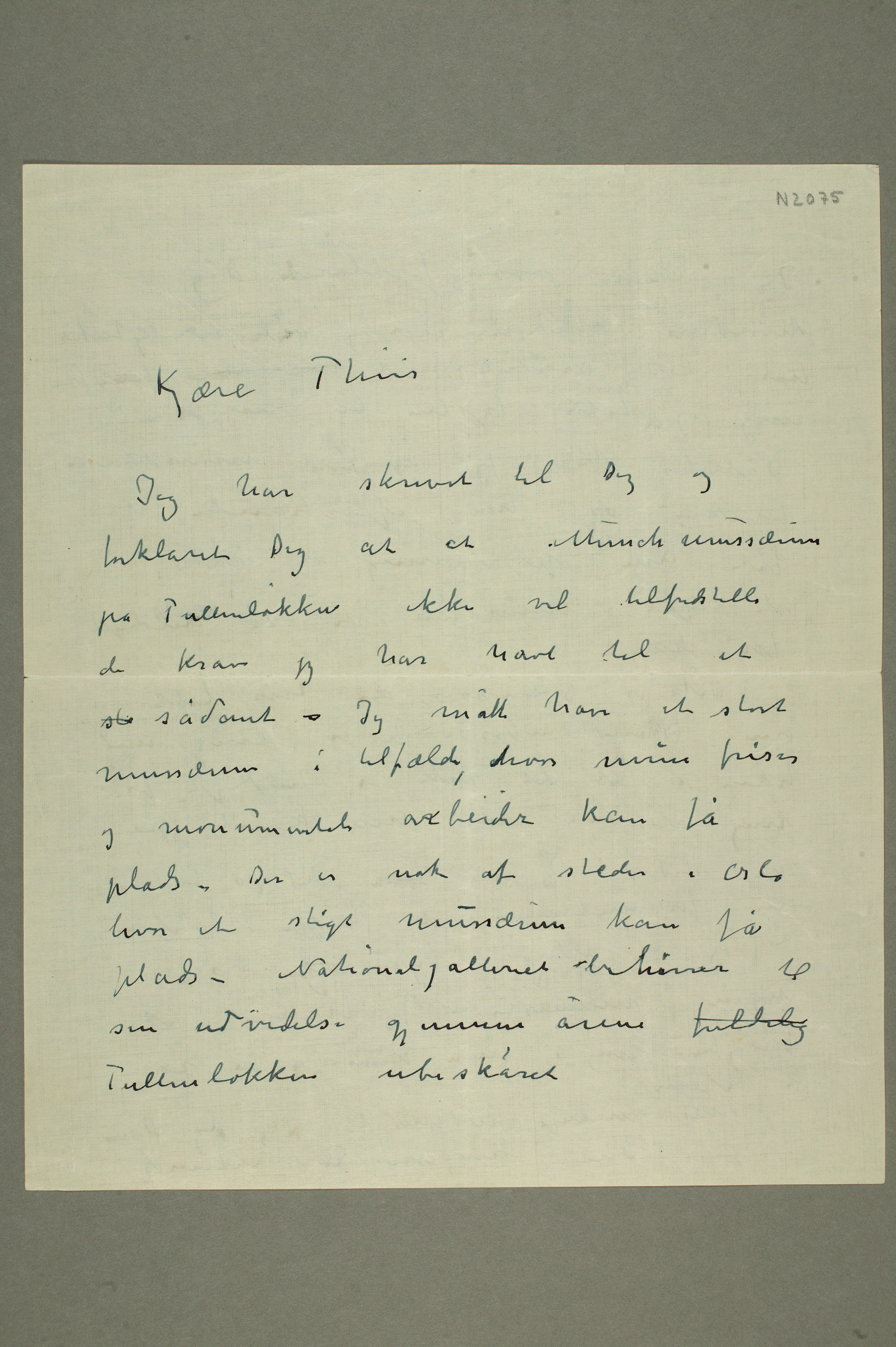 MM N 2075, Munchmuseet. Ikke datert. Brevutkast til Jens Thiis.