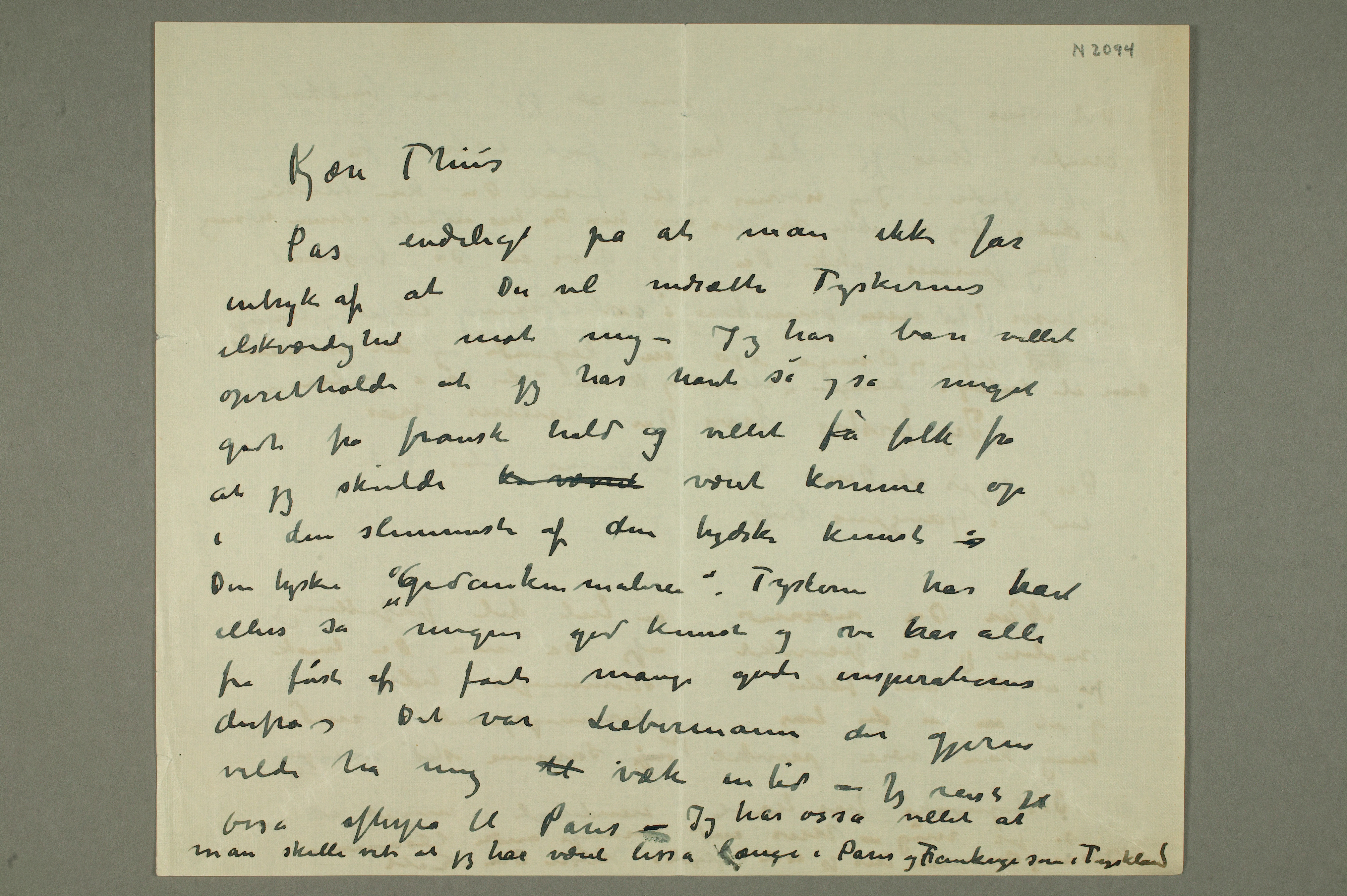 MM N 2094, Munchmuseet. Ikke datert. Brevutkast til Jens Thiis.