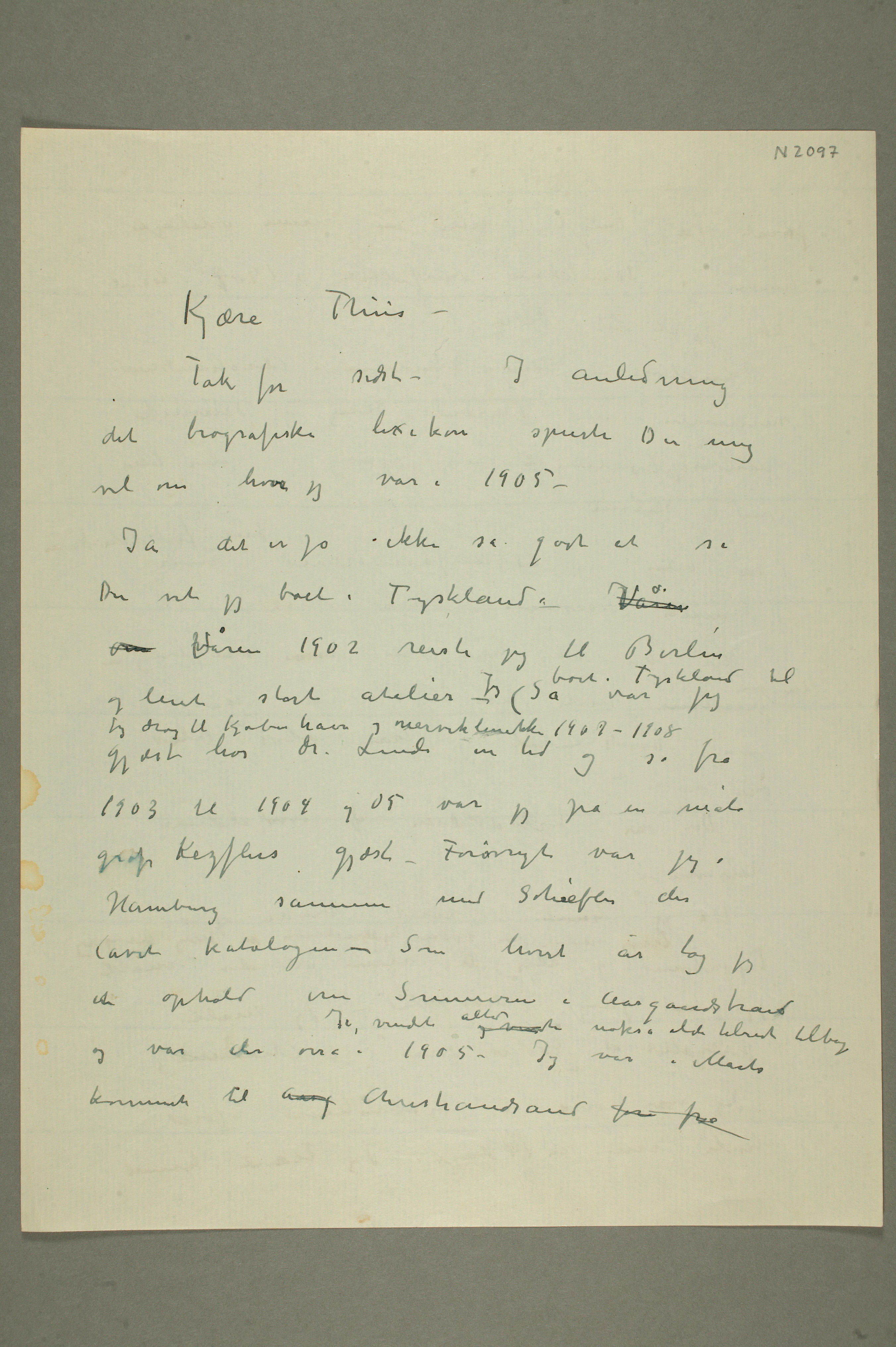 MM N 2097, Munchmuseet. Ikke datert. Brevutkast til Jens Thiis.