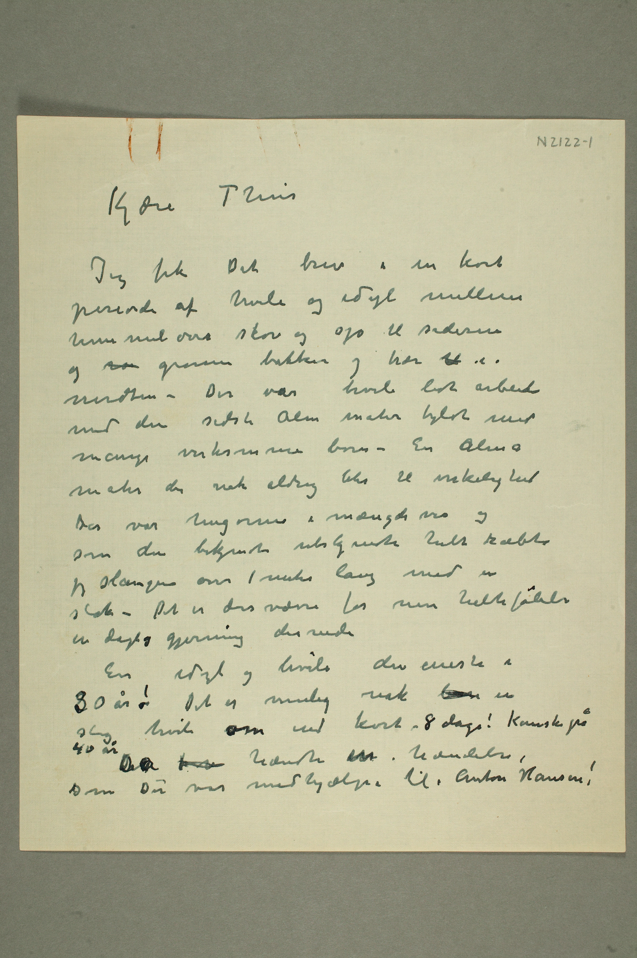 Brevutkast til Jens Thiis. . Alt. reg.nr.: 33