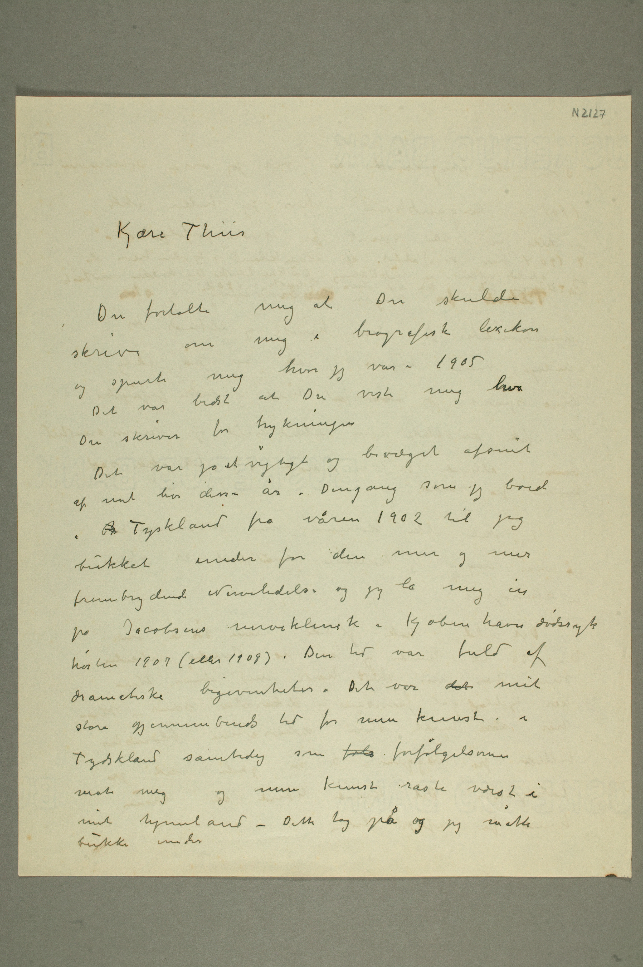 MM N 2127, Munchmuseet. Datert 1939. Brevutkast til Jens Thiis.