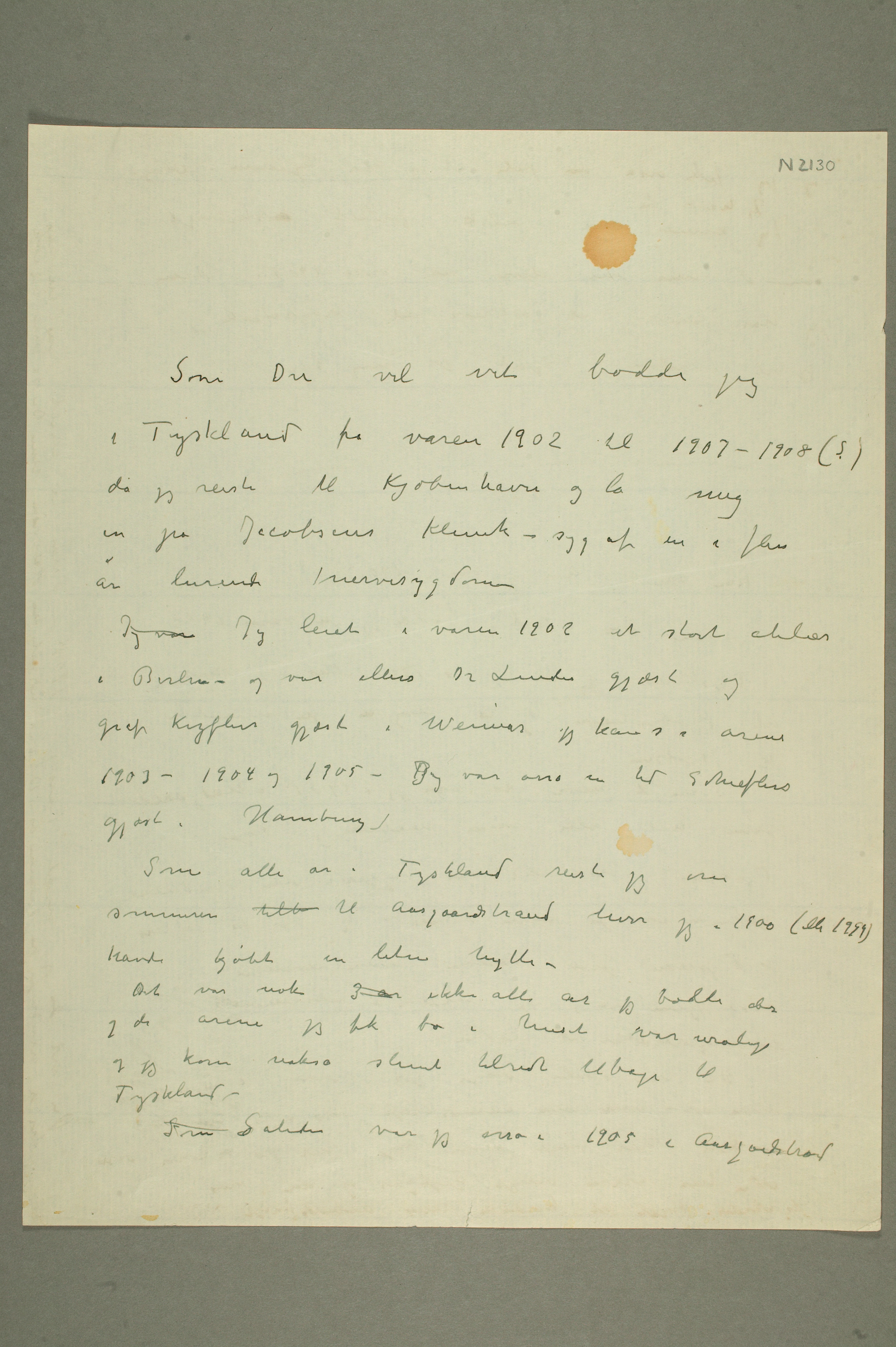 MM N 2130, Munchmuseet. Datert 1939. Brevutkast til Jens Thiis.