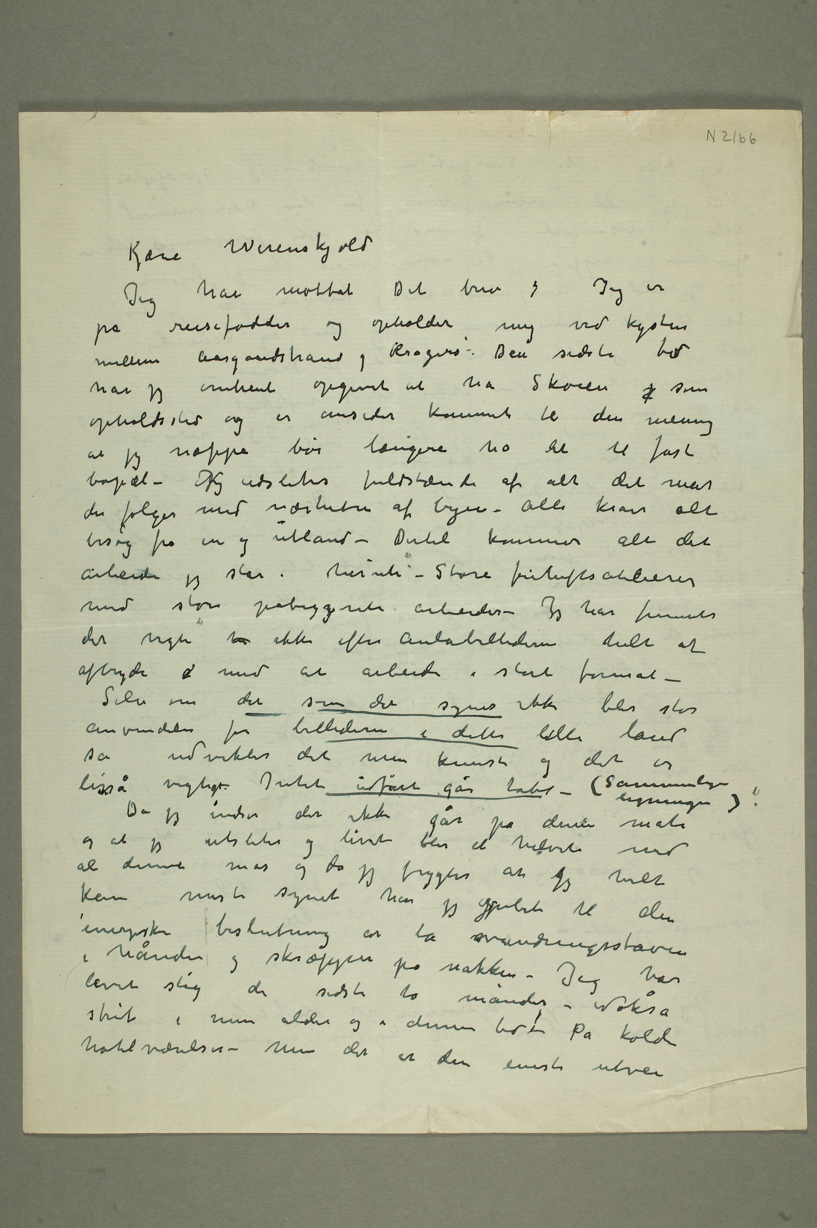 MM N 2166, Munchmuseet. Ikke datert. Brevutkast til Erik Werenskiold.