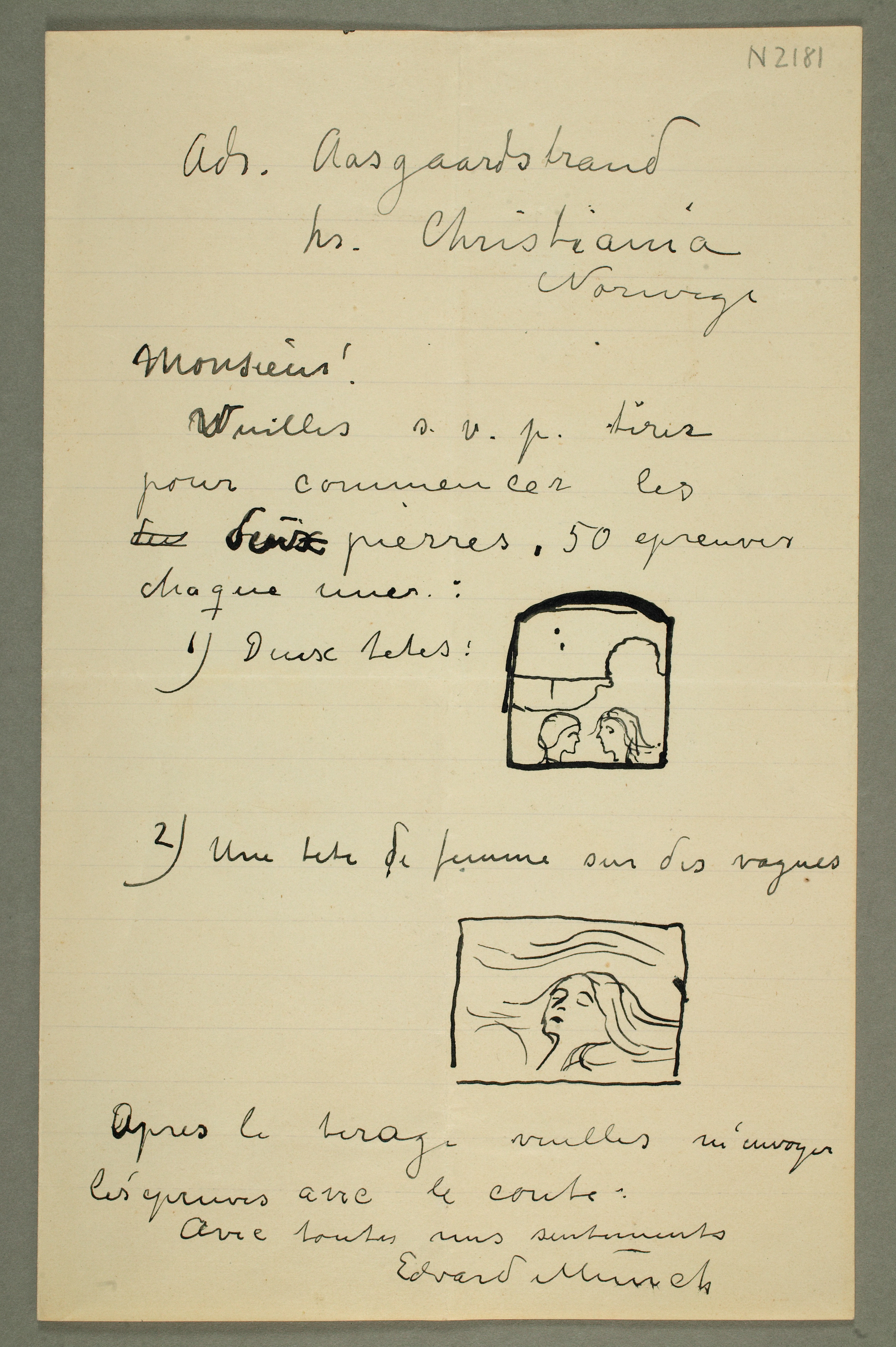 MM N 2181, Munchmuseet. Datert 1896–1897. Brevutkast til Auguste Clot.