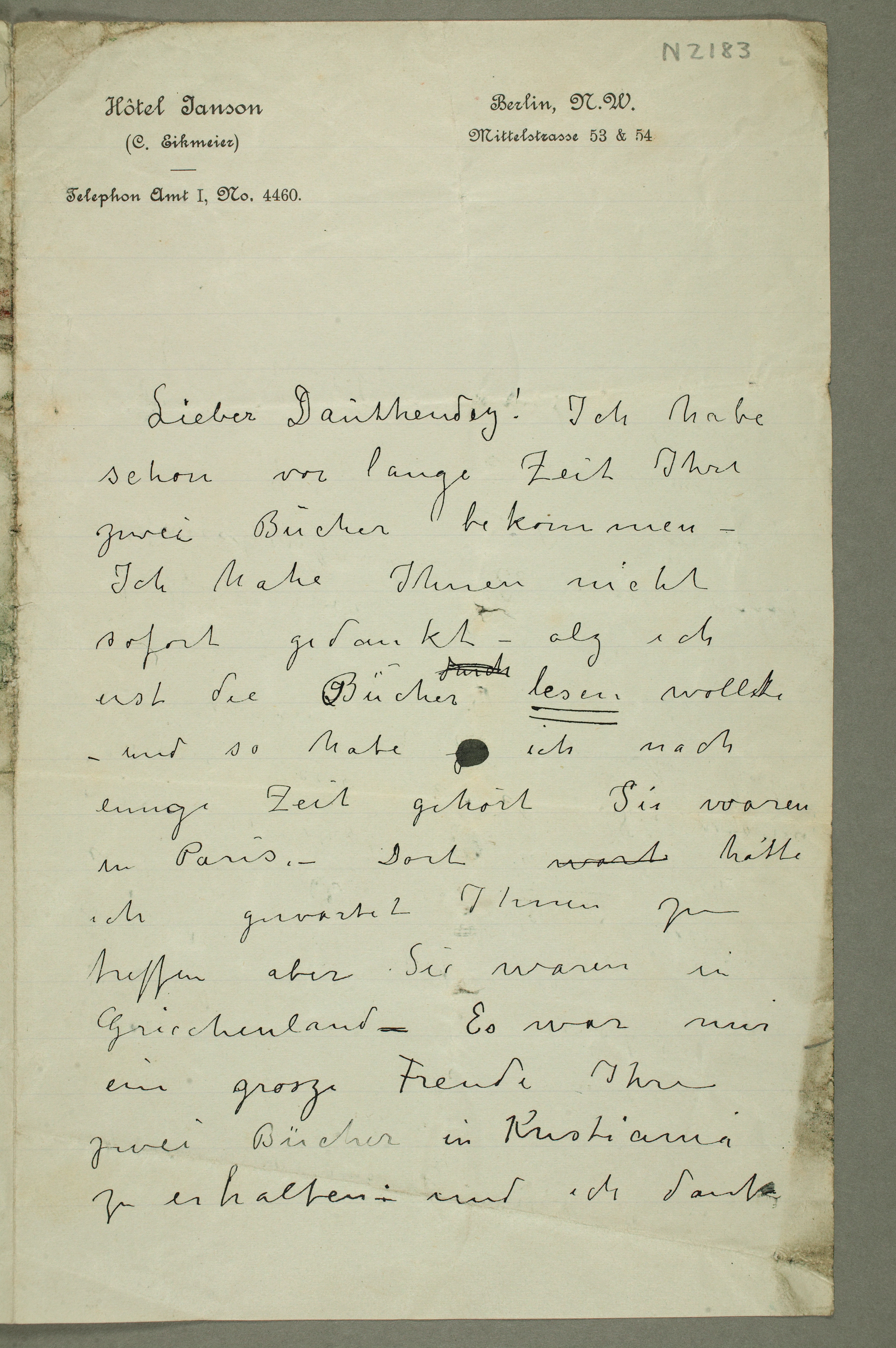 MM N 2183, Munchmuseet. Ikke datert. Brevutkast til Annie Dauthendey.