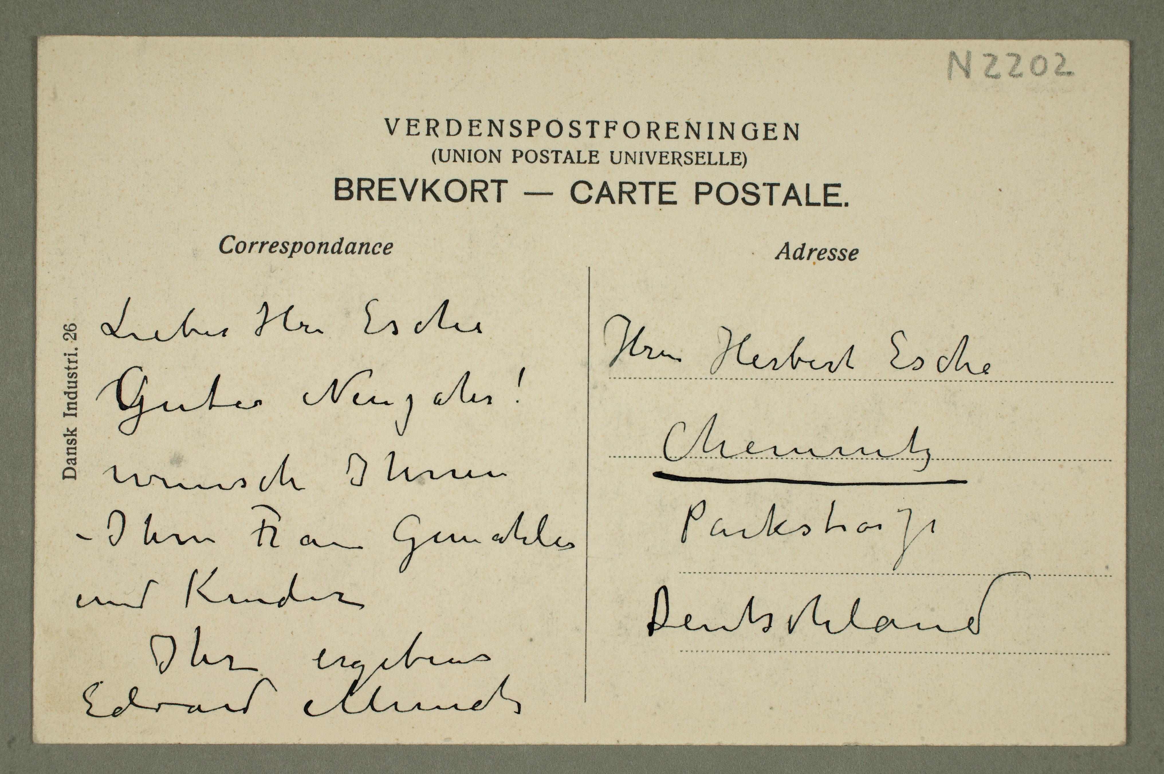 MM N 2202, Munchmuseet. Ikke datert. Brevutkast til Herbert Esche.