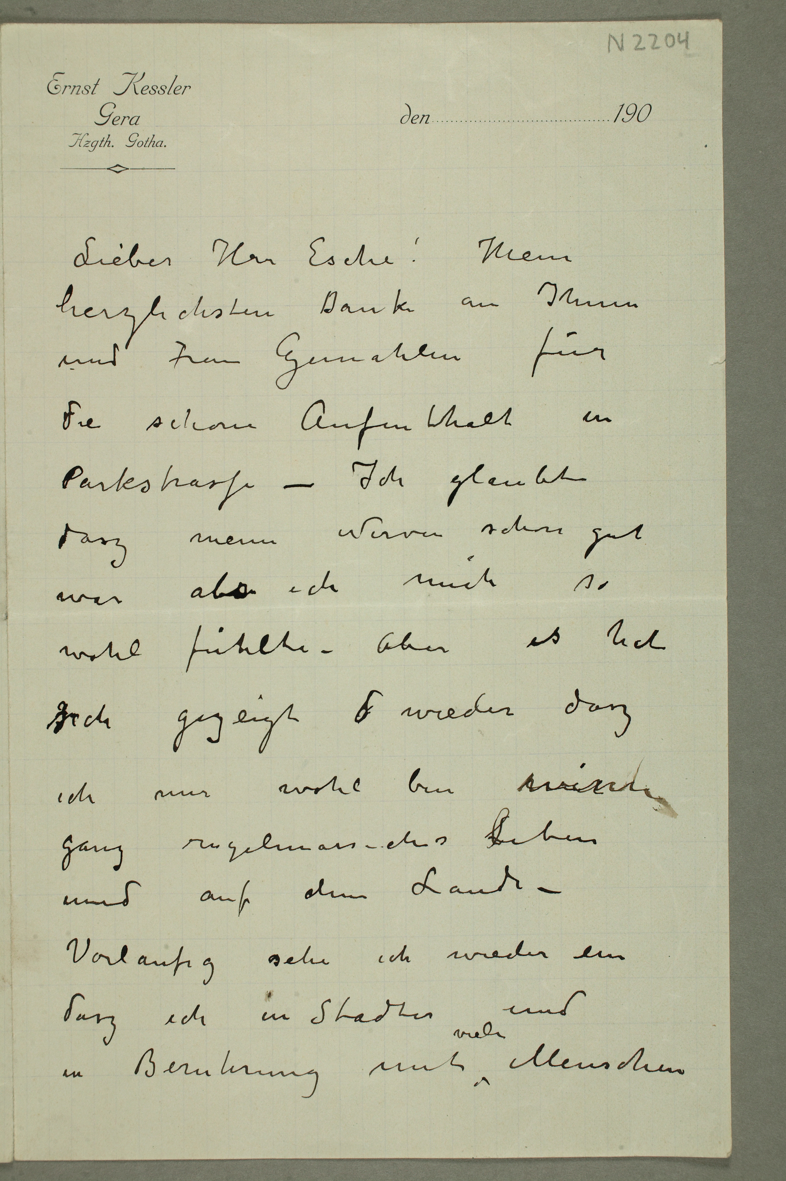 MM N 2204, Munchmuseet. Datert 1906. Brevutkast til Herbert Esche.